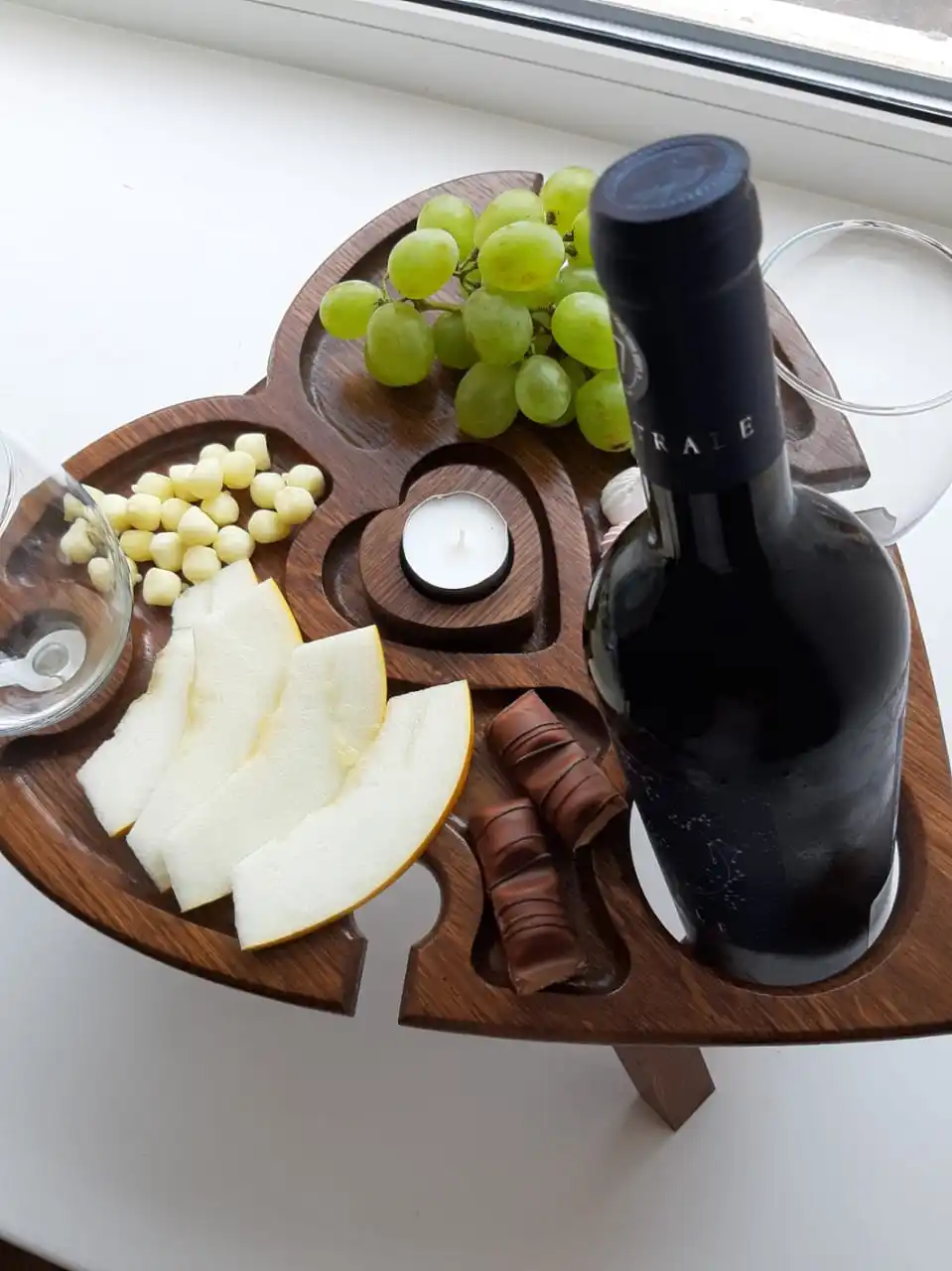 Винный столик, подсвечник в форме сердечка, подарочная упаковка из крафт картона