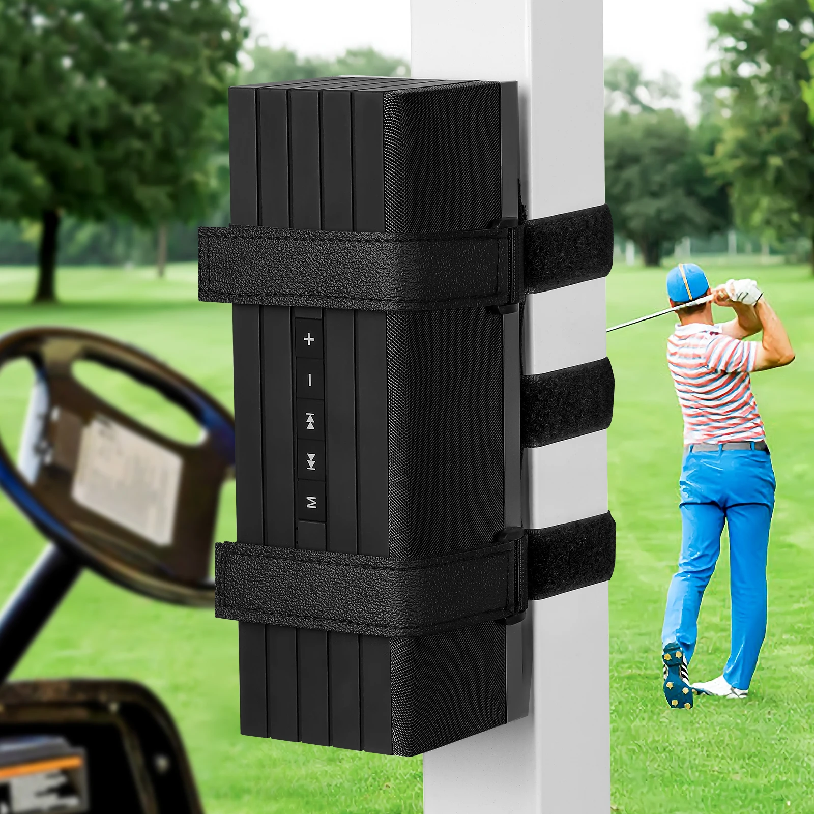 Держатель для гольф-карт, регулируемый ремень для крепления на руль велосипеда, беспроводное крепление для динамика, лодка, поперечная рама, пляжный зонт, прогулочная тележка, аксессуары для гольф-карт, подходит для крепления на ремне 13 дюймов, 7 дюймов, обруч и петля для крепления, портативный