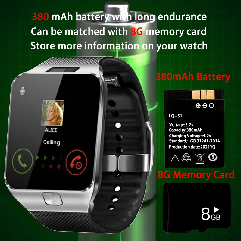 Умные часы Reloj DZ09 с поддержкой 2G SIM TF камеры, водонепроницаемые наручные часы, телефон с большой емкостью, SIM SMS часы для телефона Android Ios