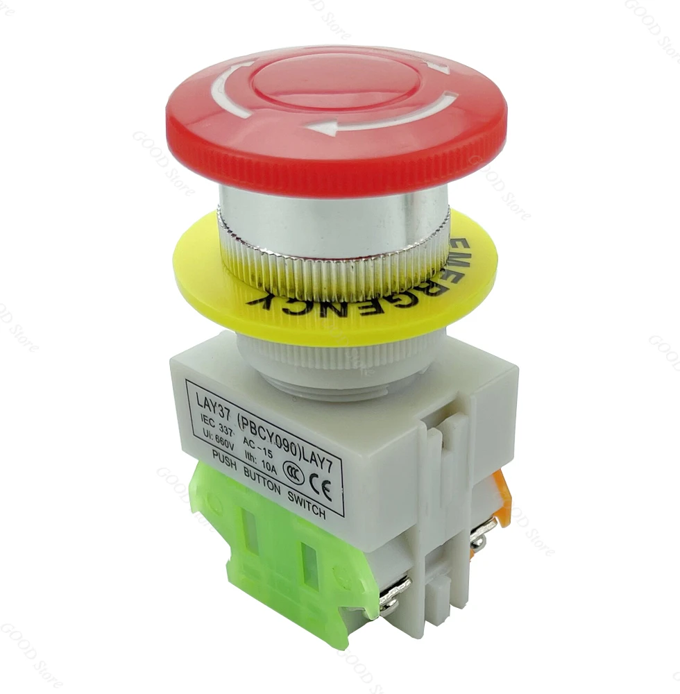 * Особенности: 4 клеммы, 22 мм монтажное отверстие, 1NO + 1NC Тип контакта, красный гриб аварийный стоп Фиксация кнопочный переключатель с желтой крышкой.
