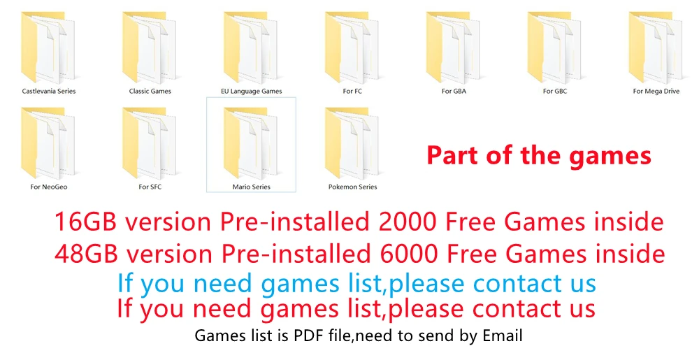 If you need detail games list,please contact me.