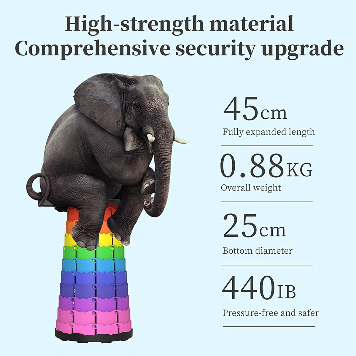 -Инновационная складная конструкция: уникальная запирающая застежка позволяет складному табурету легко открывать и закрывать за считанные секунды, и он надежно фиксируется на месте после открытия. Даже ребенок может сделать это быстро и легко! Удобно и безопасно вам понравится!