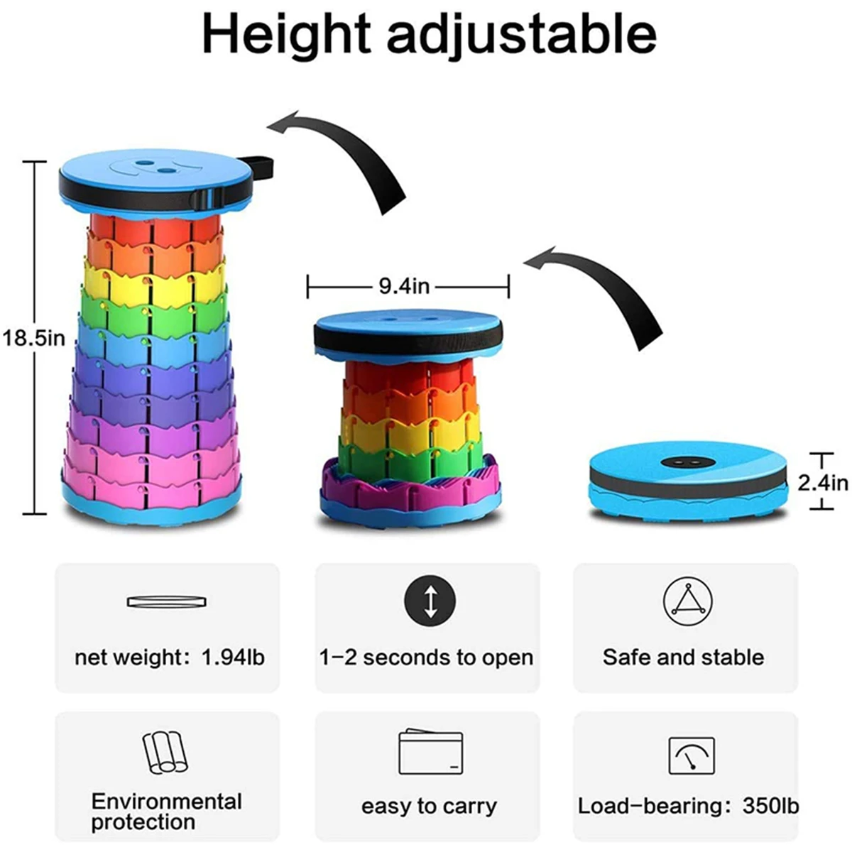 -Регулируемая высота: Складной стул регулируется, и может быть установлен на ваш желаемую высоту в диапазоне от 2,4 до 18 дюймов. Эта регулировка делает его пригодным для большинства взрослых и детей в использовании в любом месте!