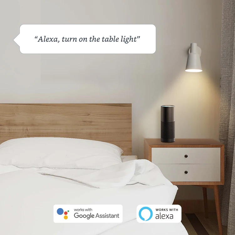 Работает с Alexa и Google assistant, чтобы добавить Голосовое управление без помощи рук в любую розетку. -Алекса, включи светильник.