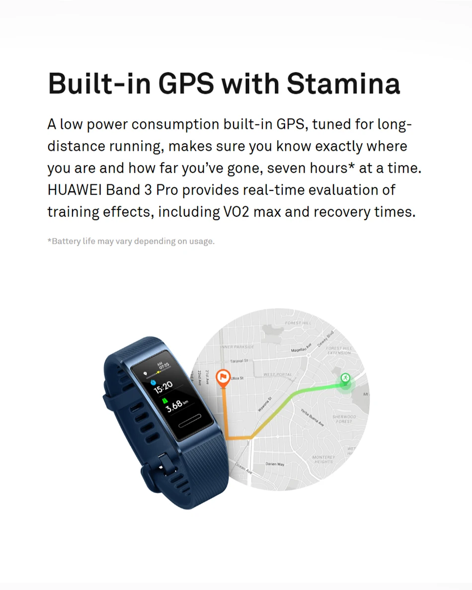1. Это версия Huawei Band 3 Pro со встроенной функцией GPS.