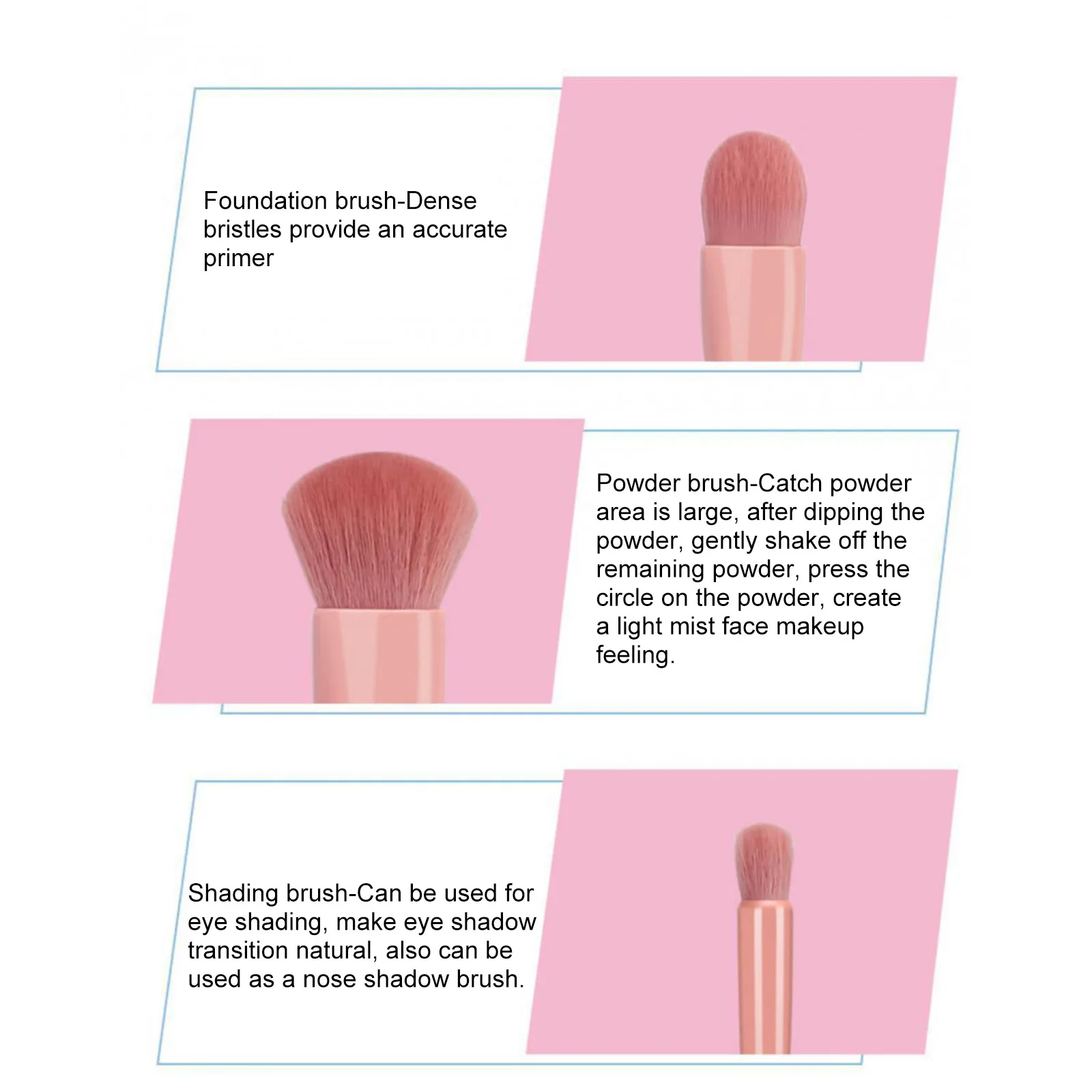 Включает в себя кисть для основы/кисть для пудры/кисть для теней/кисть для губ, многоразмерные кисти, которые удовлетворят ваши разнообразные потребности в макияже.