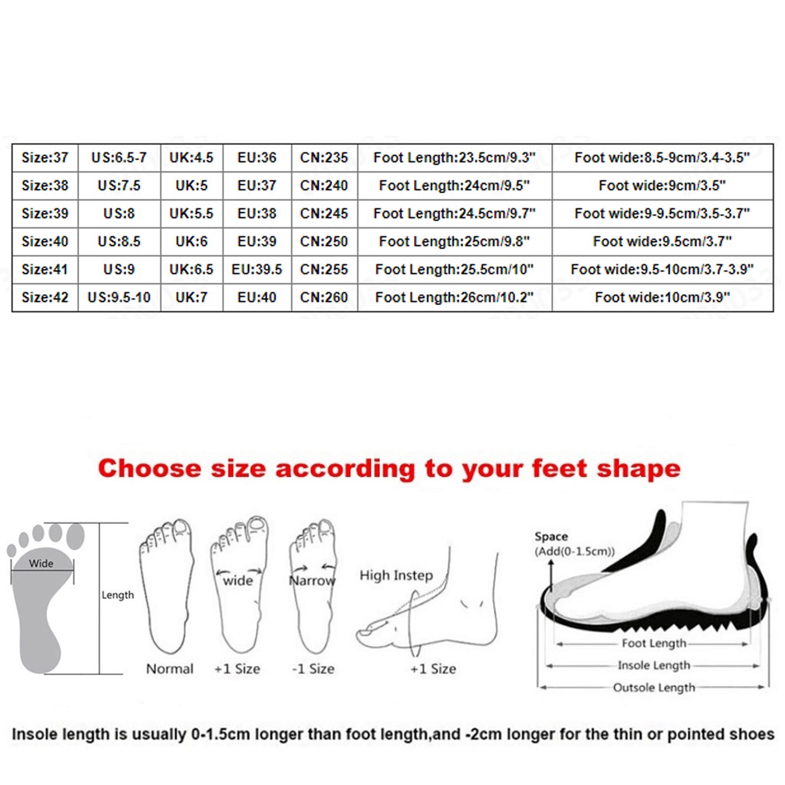 Полезные советы:Различные стили обуви, пожалуйста, выберите размер в соответствии с типом вашей стопы.
