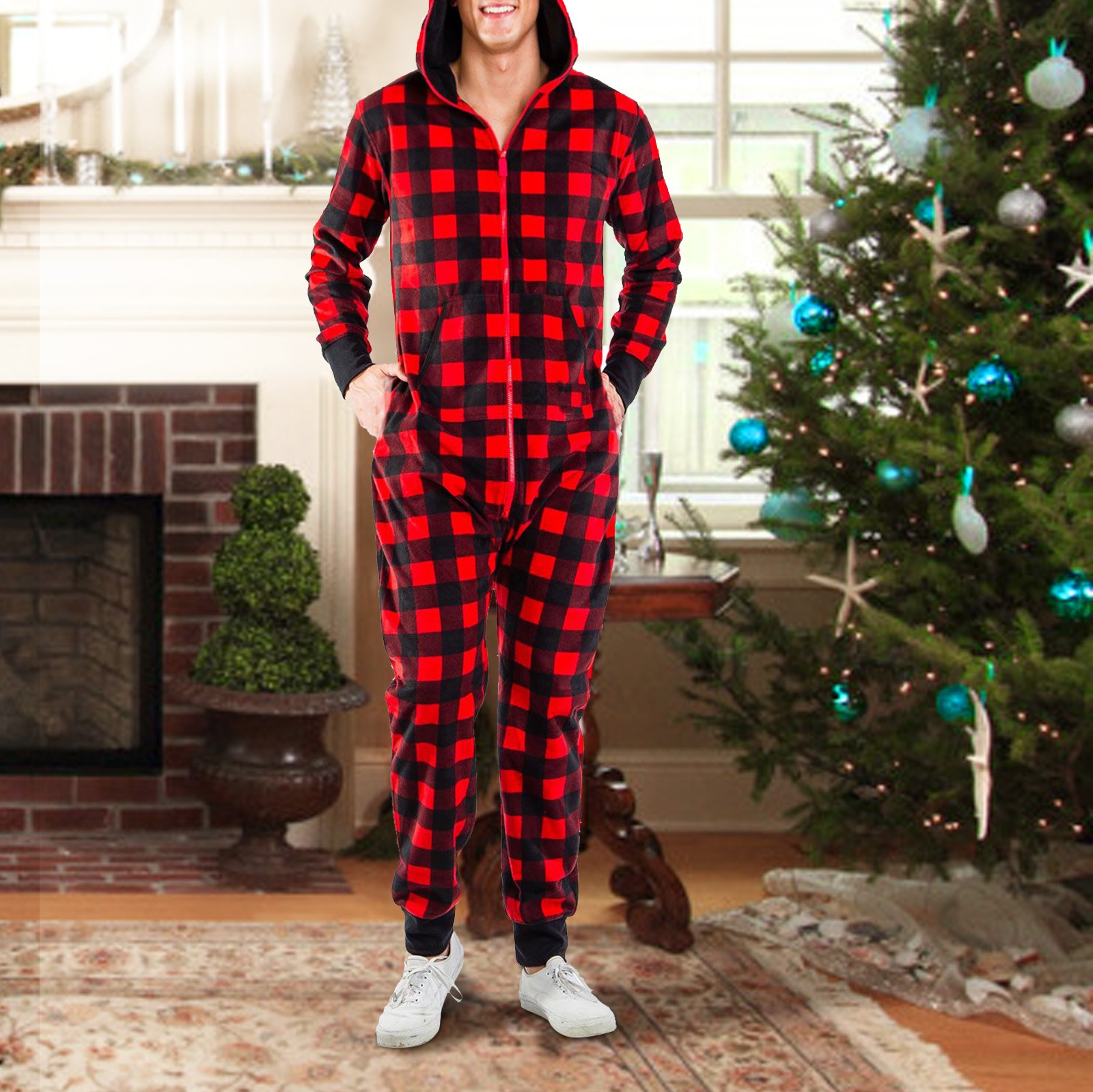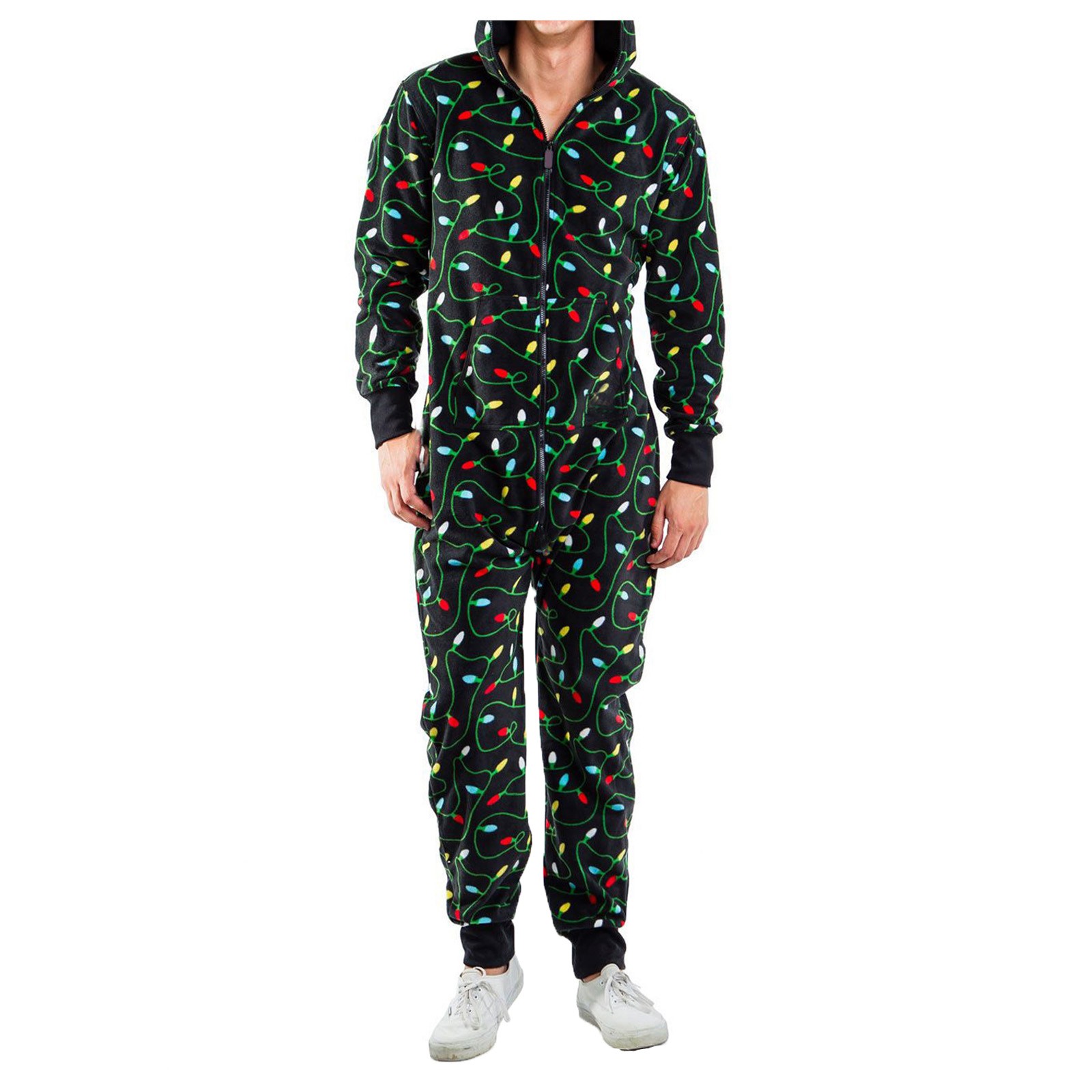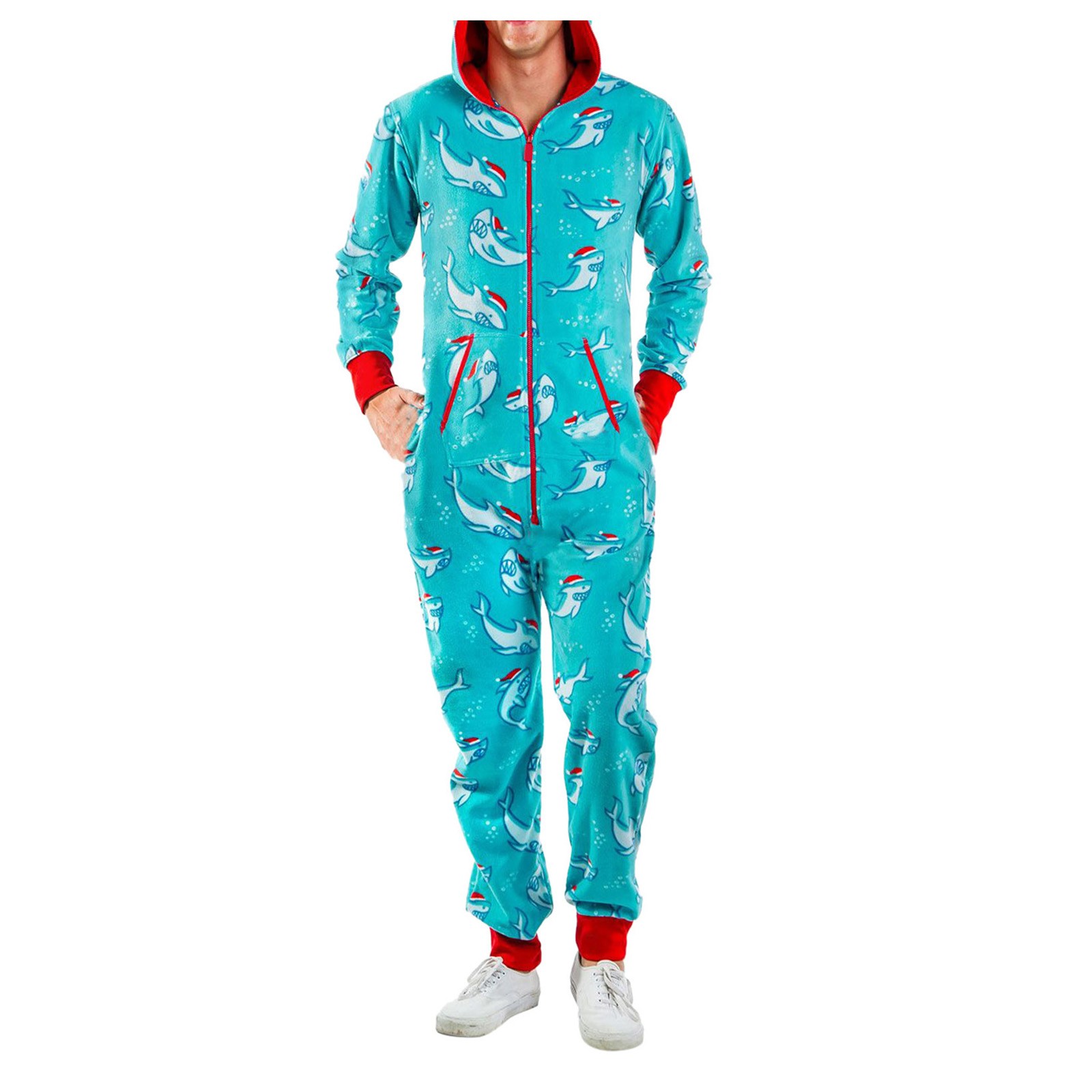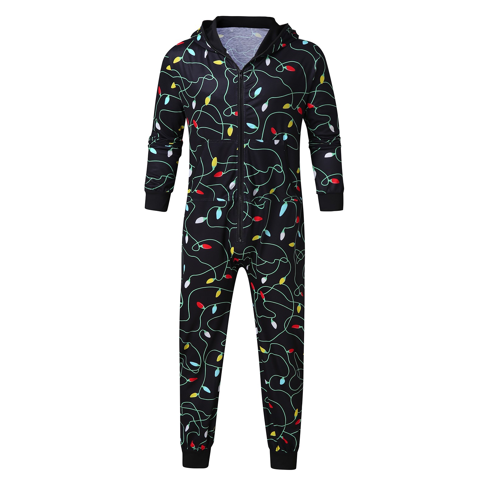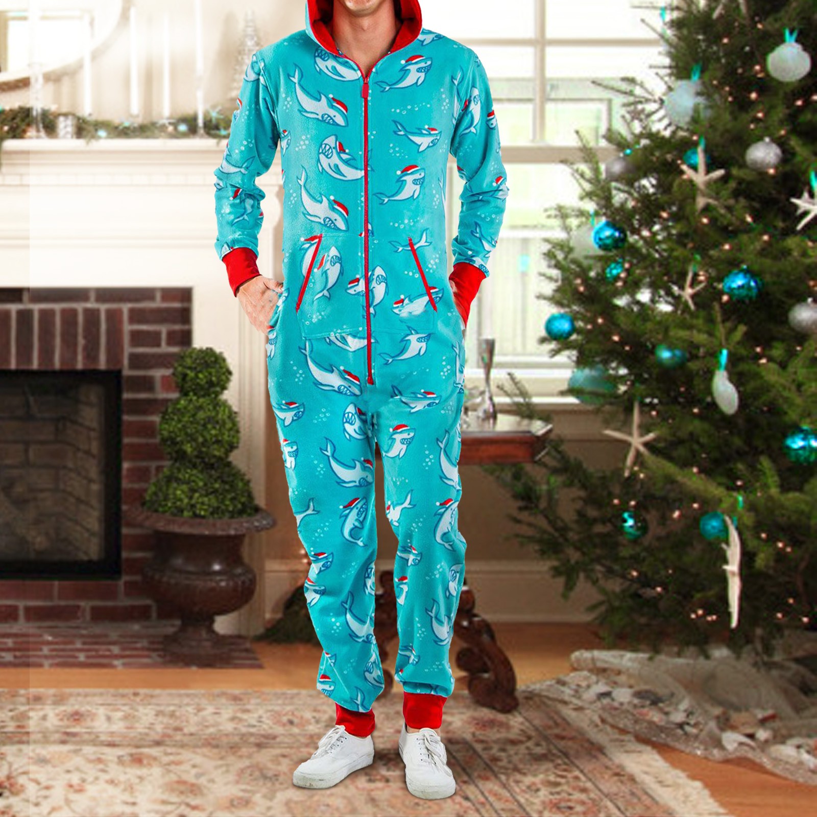 Мужская пижама с длинным рукавом, 3D принт с рождественским оленем, комбинезон на молнии с капюшоном