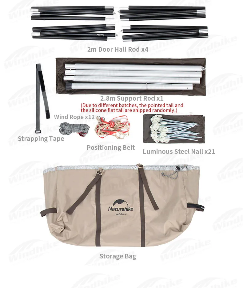 Упаковочный лист: внутренняя часть палатки/Наружная палатка/2,8 алюминиевая прутковая заготовка шкива синхронизации: сплав опорный стержень x1 (φ33mm) /