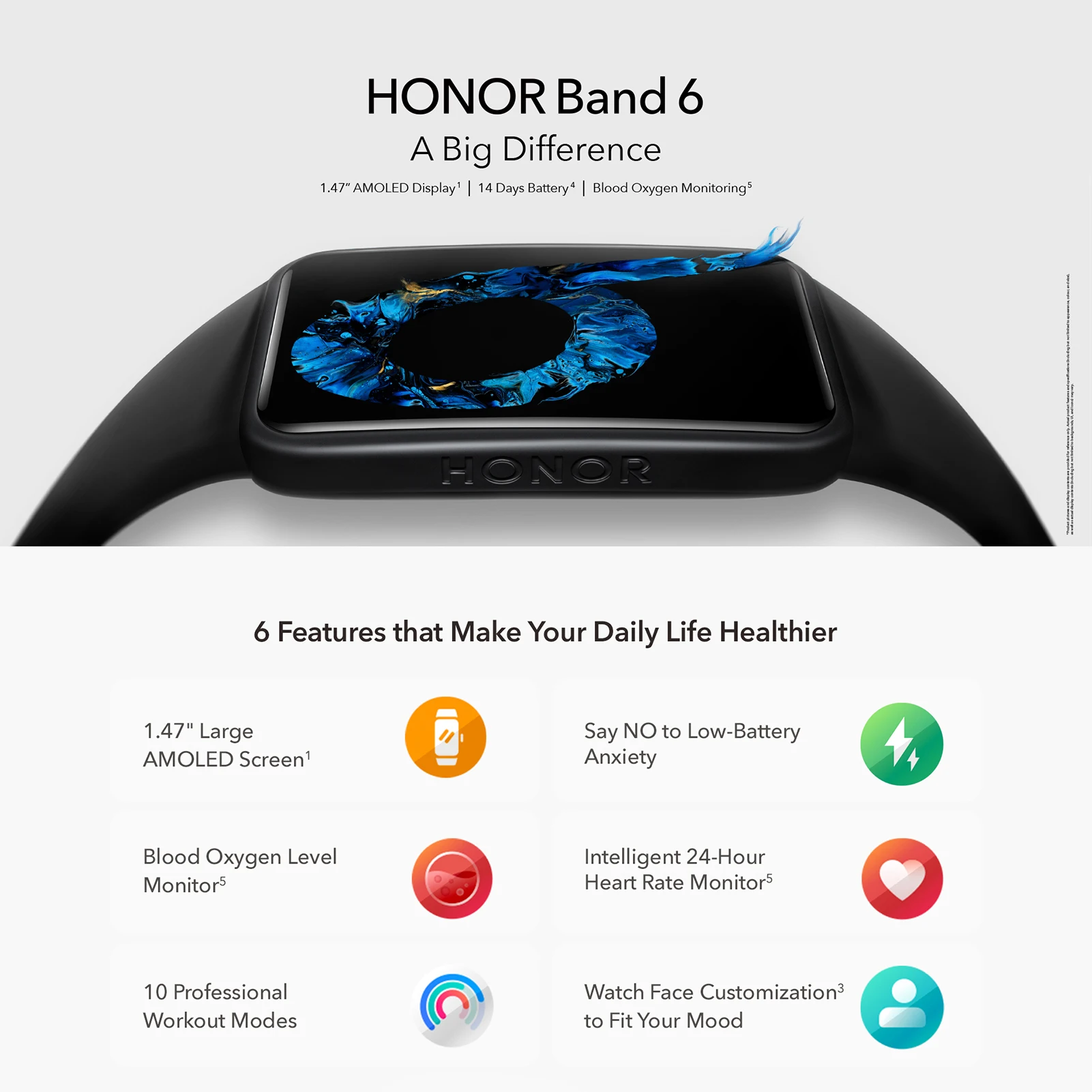 * HONOR Band 6-это не медицинское оборудование. Все результаты измерений могут быть предоставлены только в личных целях, а не в медицинских целях.