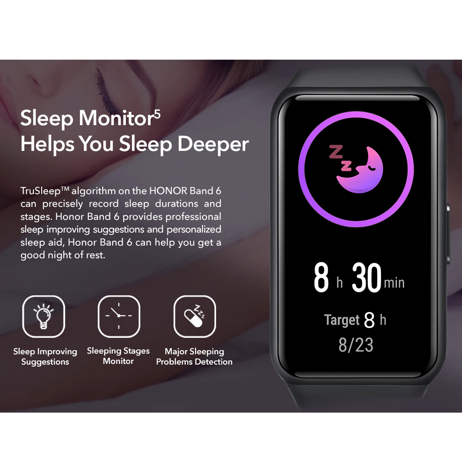 80% Новый смарт-браслет Huawei Honor Band 6 AMOLED для плавания, Водонепроницаемый Bluetooth фитнес-монитор для сна, пульсометр, музыкальный браслет