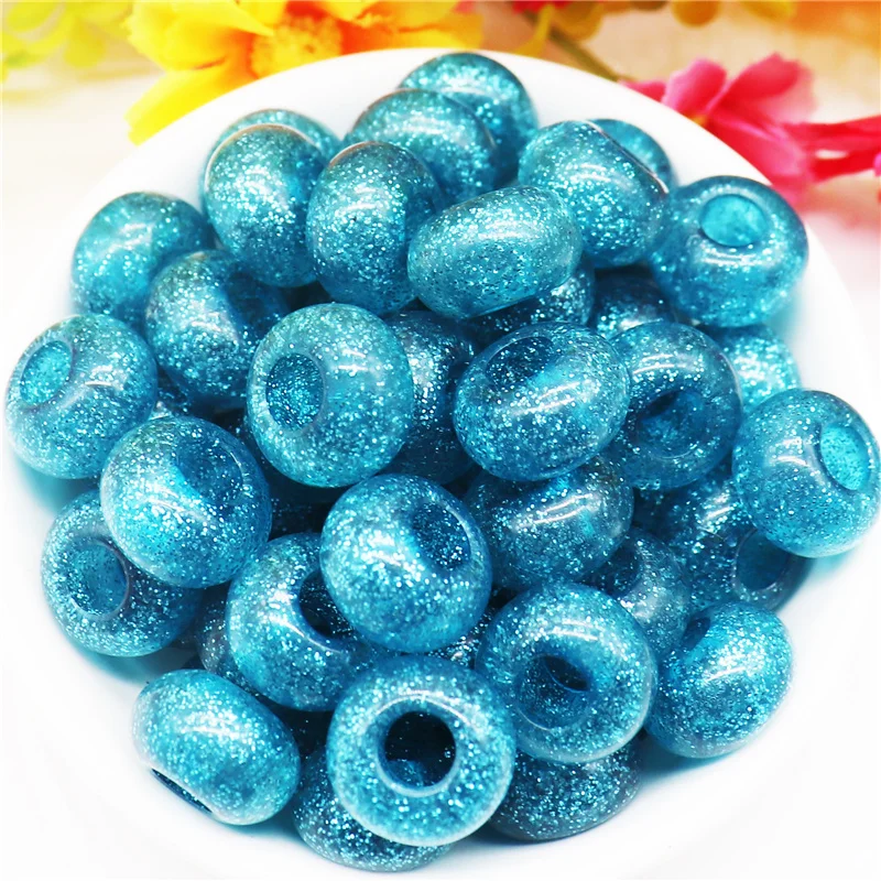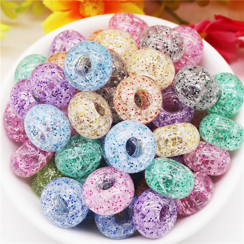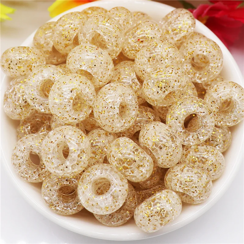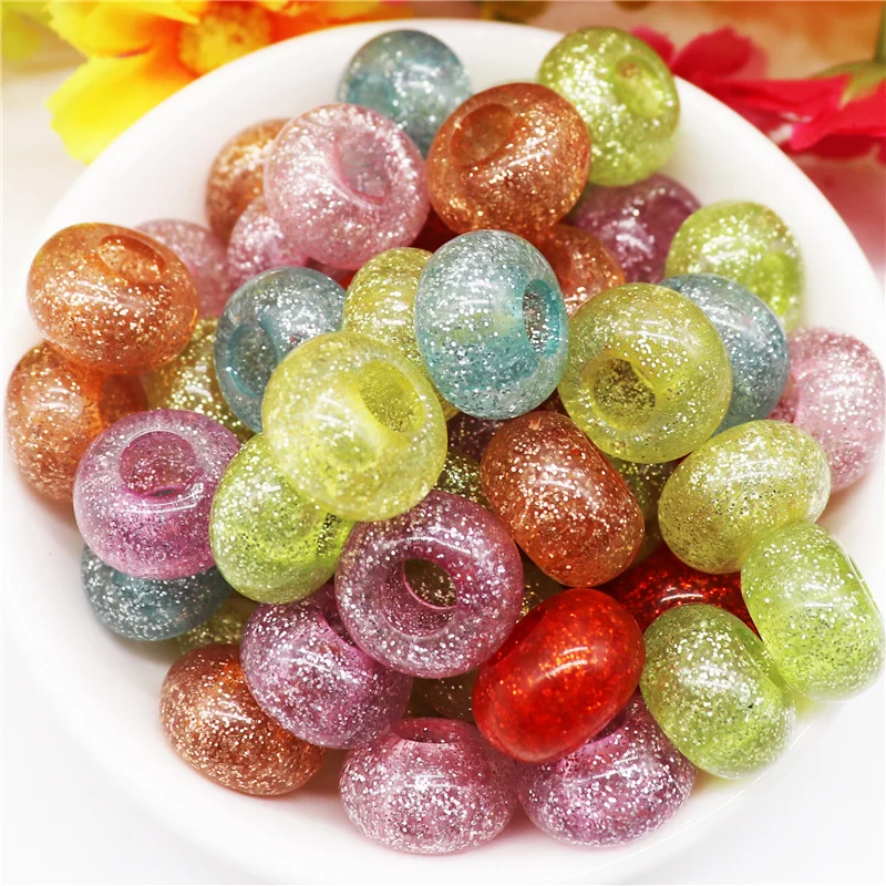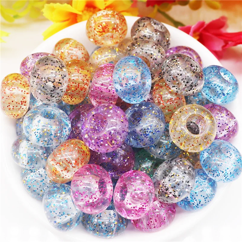 10 шт. смешанные цвета пластиковые смолы большое отверстие блеск разделитель бисер Европейское очарование Fit Pandora браслет для женщин волосы бусины DIY ремесло