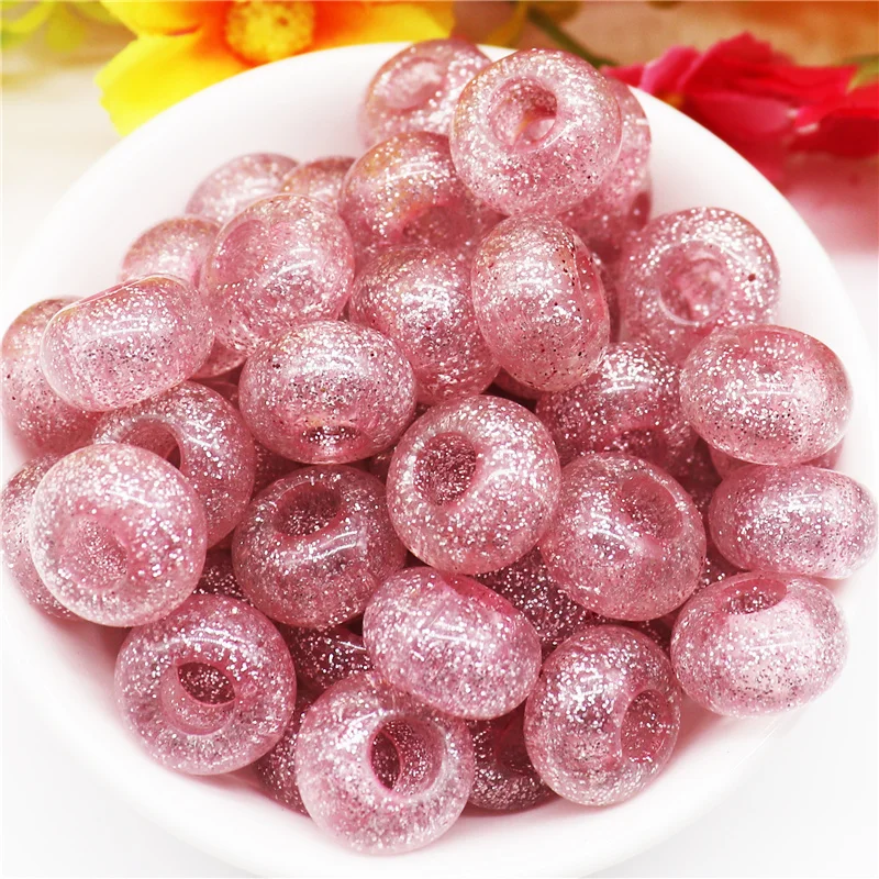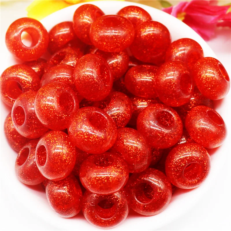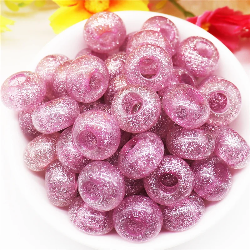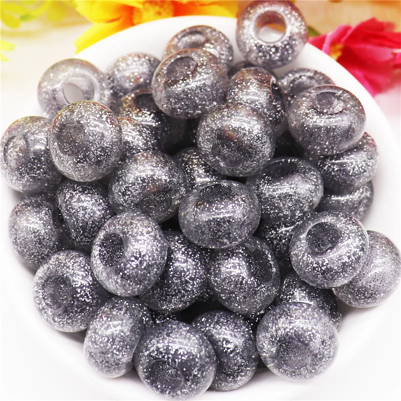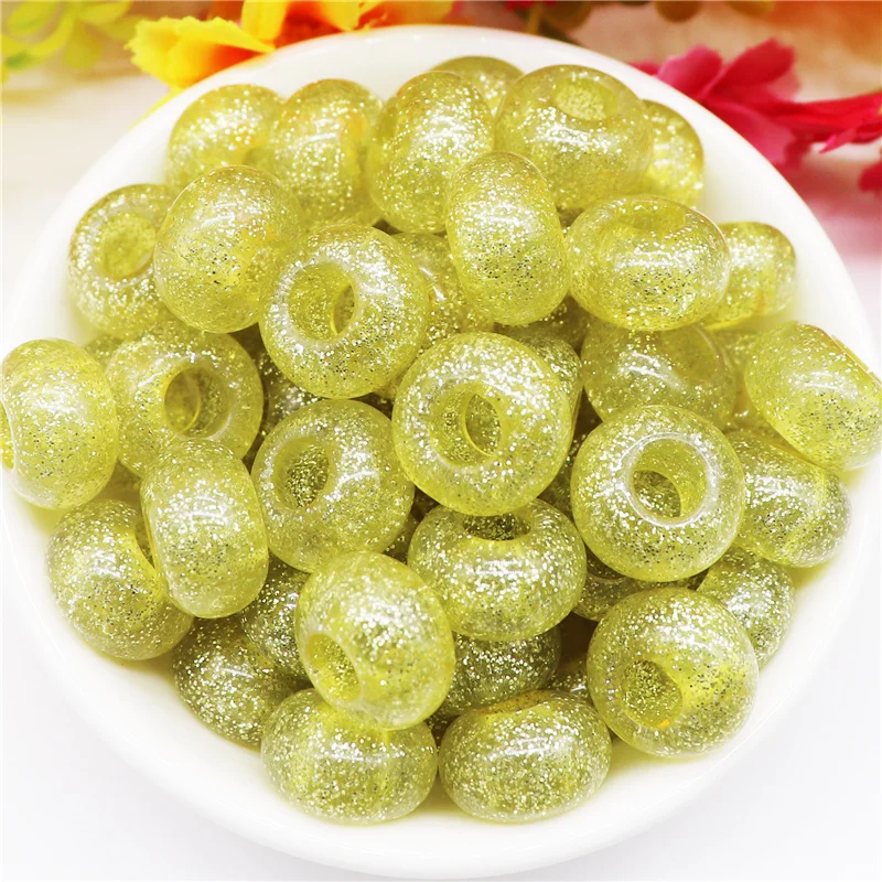 10 шт. смешанные цвета пластиковые смолы большое отверстие блеск разделитель бисер Европейское очарование Fit Pandora браслет для женщин волосы бусины DIY ремесло