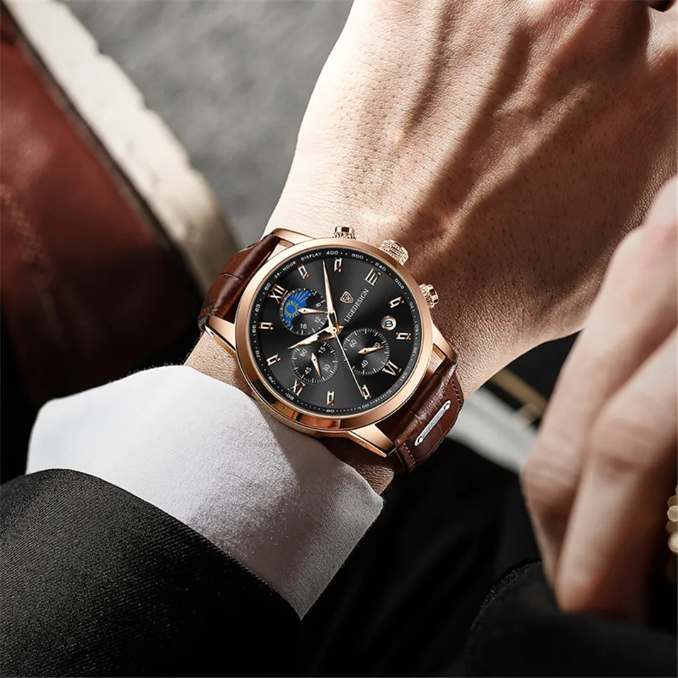 Это наши новые дизайнерские часы LIGE, которые являются новыми креативными часами, они имеют уникальный дизайн фазы Луны, стильные часы, которые объединяют секундомер, дату и минуты.