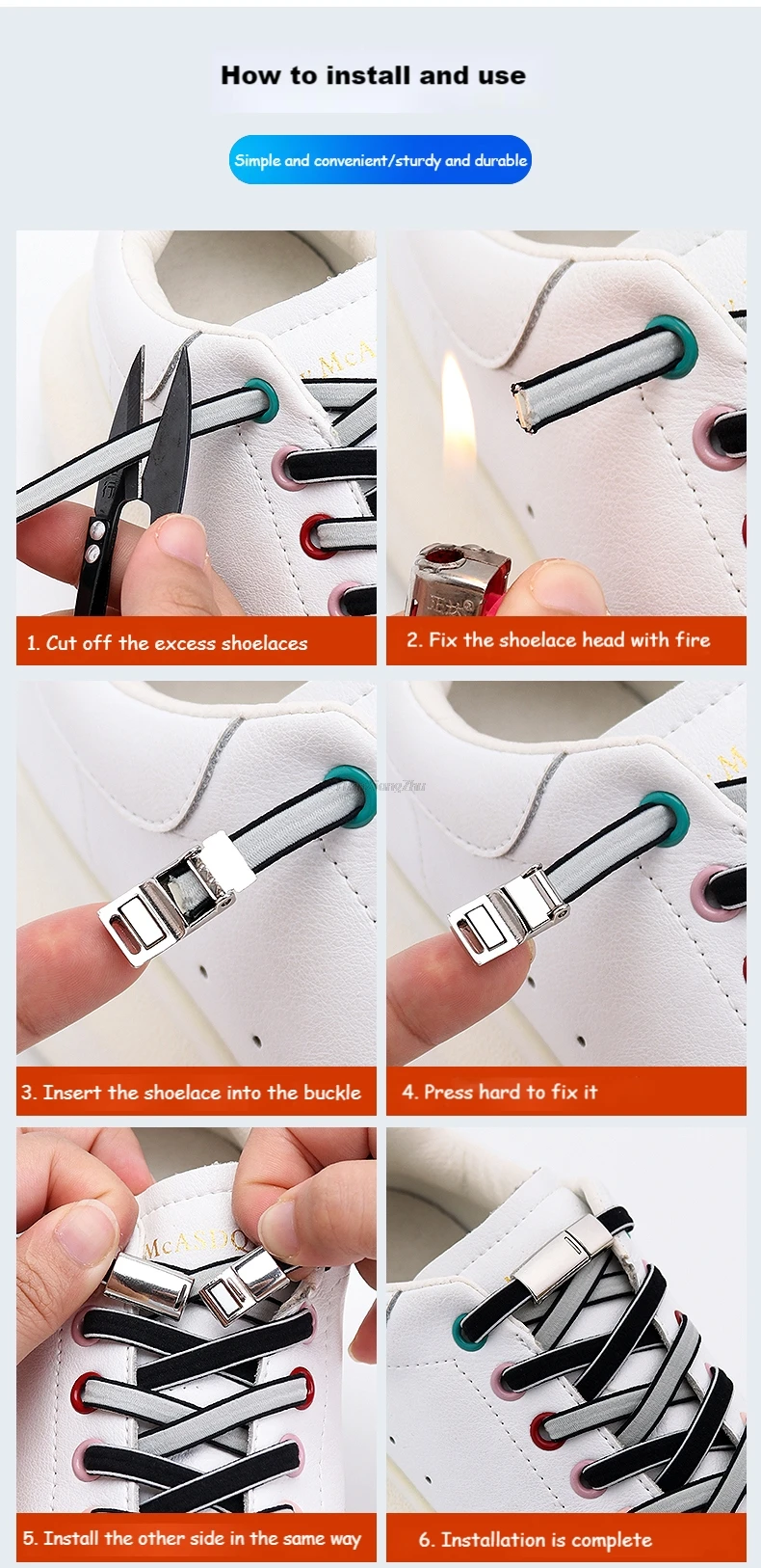 Прост в использовании. Надевать обувь будет непросто. Эти эластичные шнурки для обуви легко и быстро снимаются.