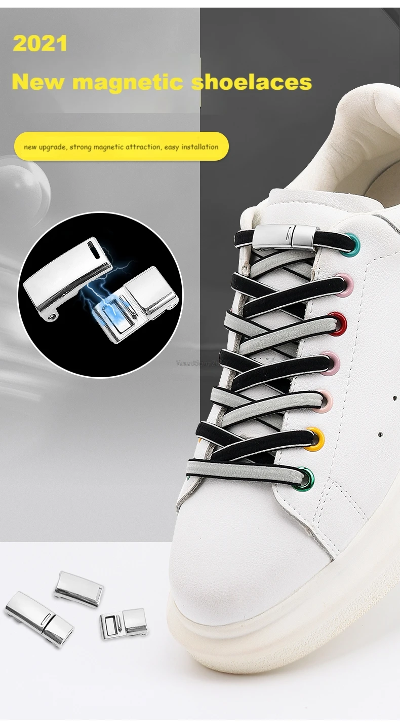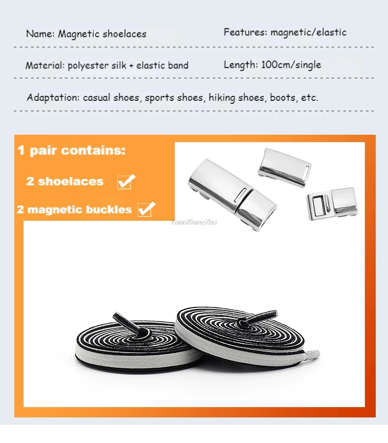 Научный дизайн: обновленная версия, шнурки без галстука имеют уникальную изогнутую магнитную пряжку и плоская эластичная веревка. Конструкция с двойным замком на магнитной застежке позволяет вам никогда не беспокоиться о том, что шнурки будут ослаблены; кружевные замки изогнуты и оснащены плоским тянущимся шнуром, который идеально сочетается с ногами, чтобы ваши ноги были удобны в течение всего дня.