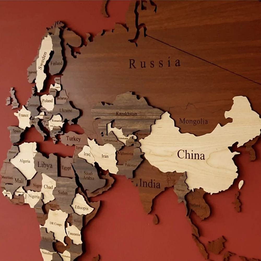 3 DIMENSIONAL WOODEN WORLD MAP