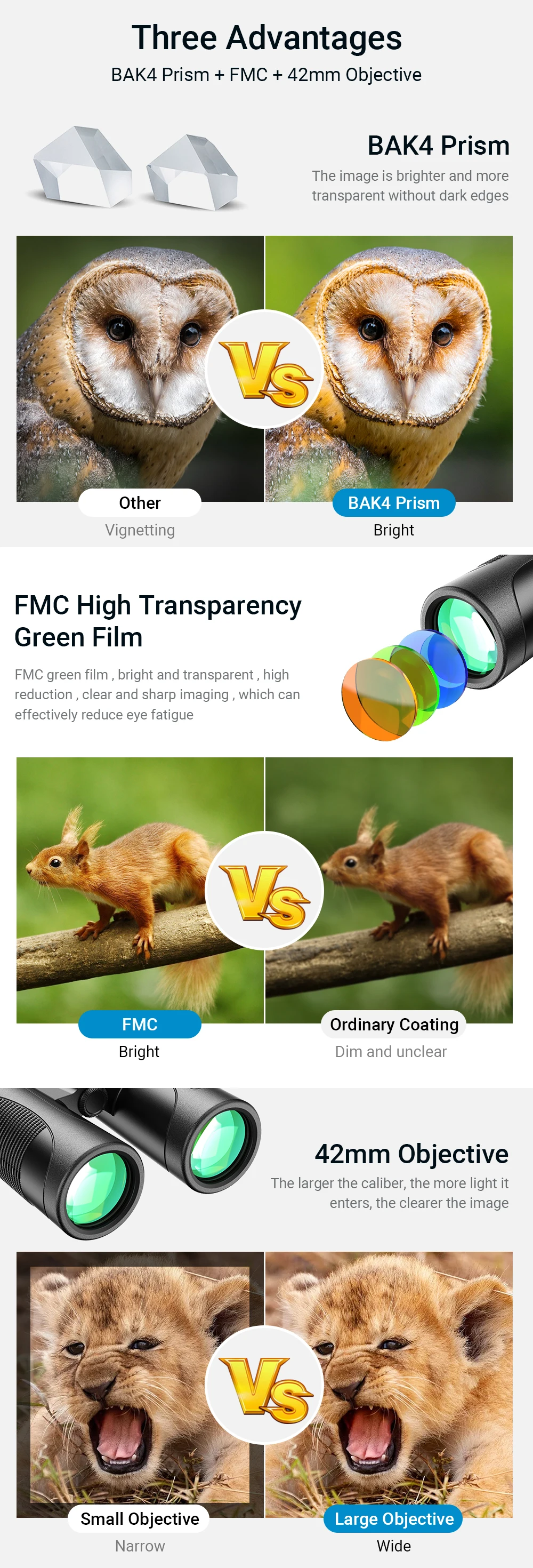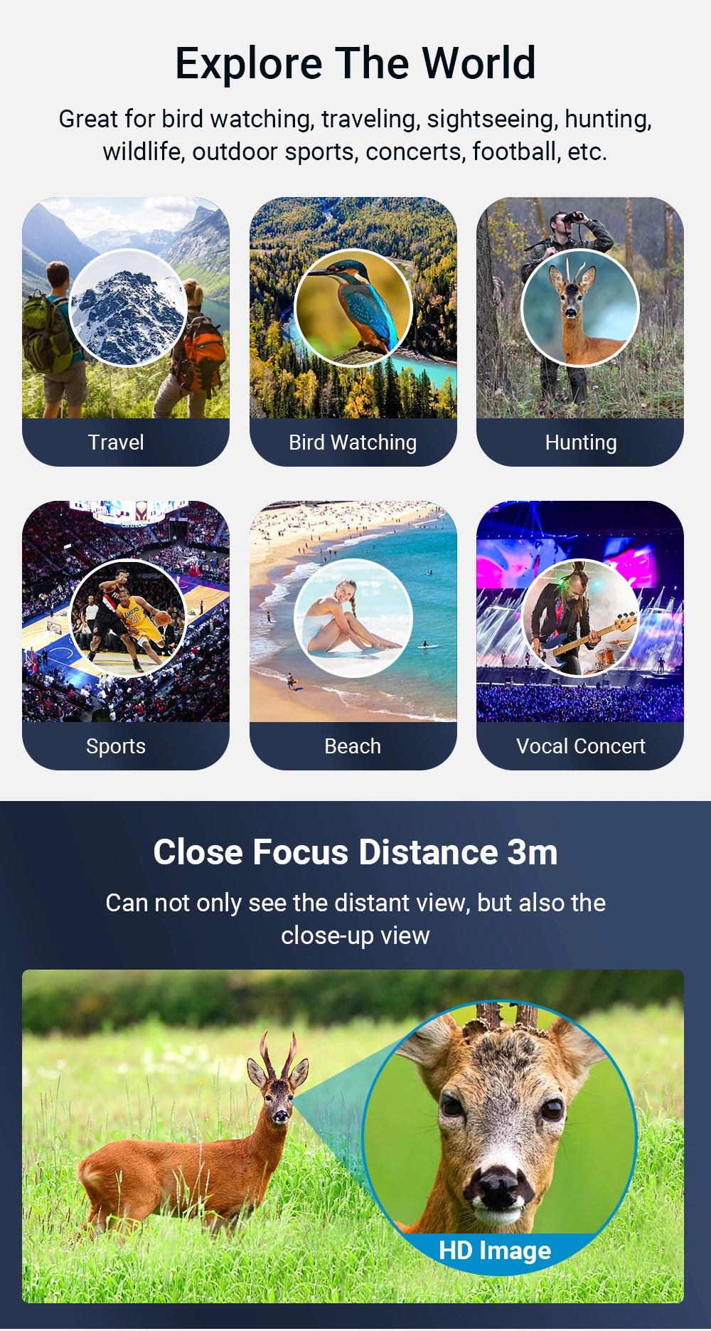 Отлично подходит для наблюдения за птицами, путешествий, экскурсий, охоты, дикой природы, спорта на открытом воздухе, концертов, футбола и т. д.