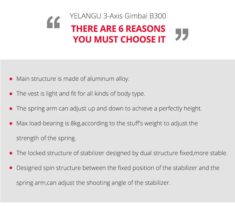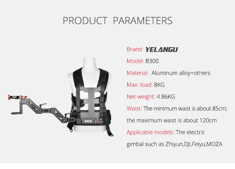 YELANGU B300 DSLR трехосевой гироскоп пружинный двойной держатель для фотосъемки амортизирующий жилет для камеры Aaccessories стабилизатор