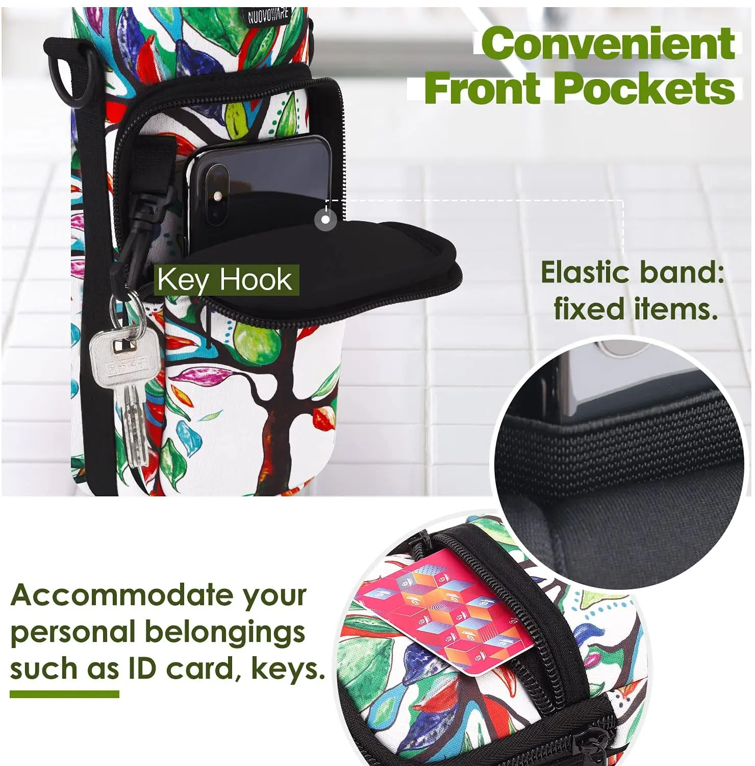 2 кармана: маленький карман на молнии предназначен для наличных денег и карт, большой карман на молнии предназначен для смартфонов, ключей и других предметов первой необходимости. Когда вы выходите, вам просто нужно принести этот мешок для бутылки с водой, не нужно носить сумку, чтобы держать эти мелкие предметы.