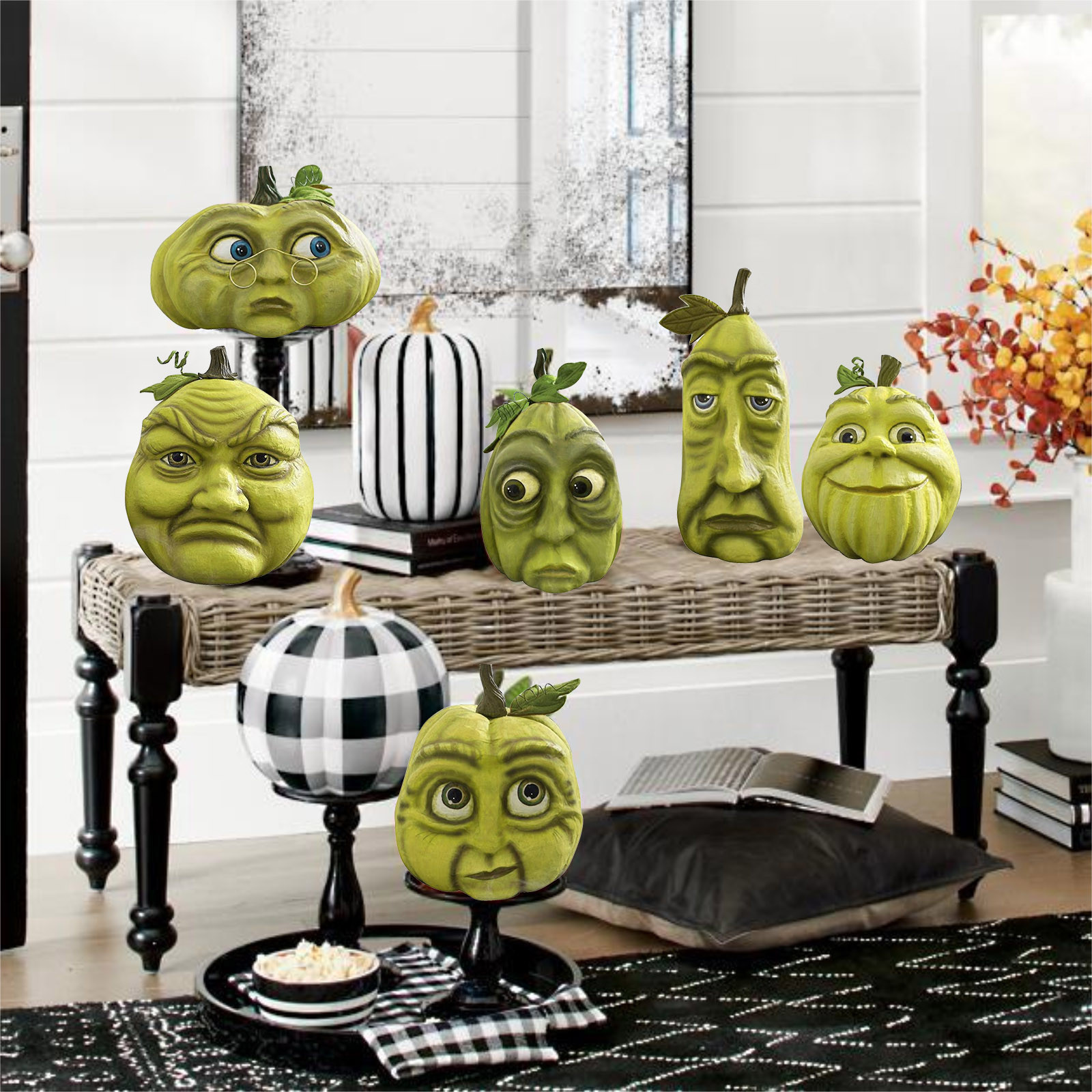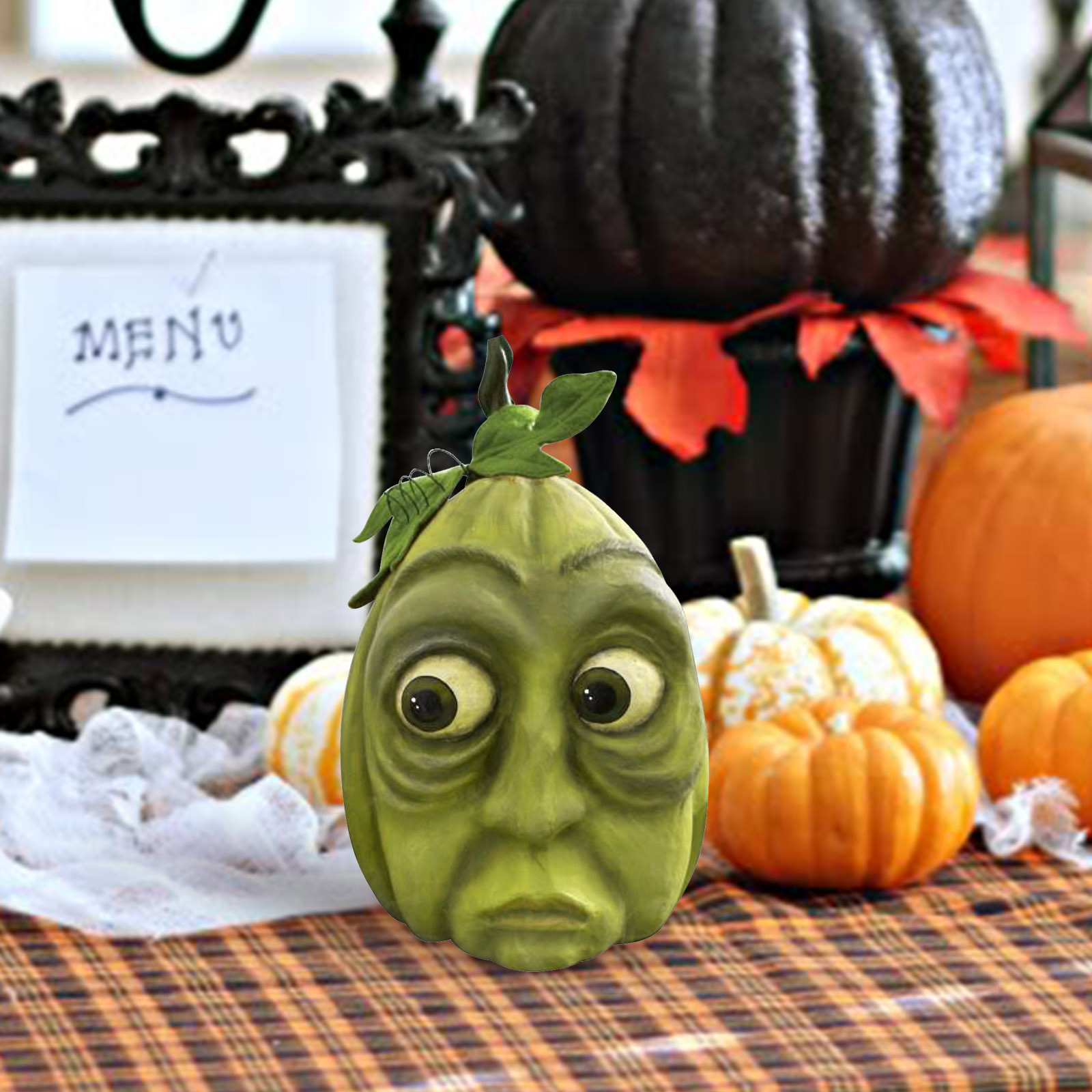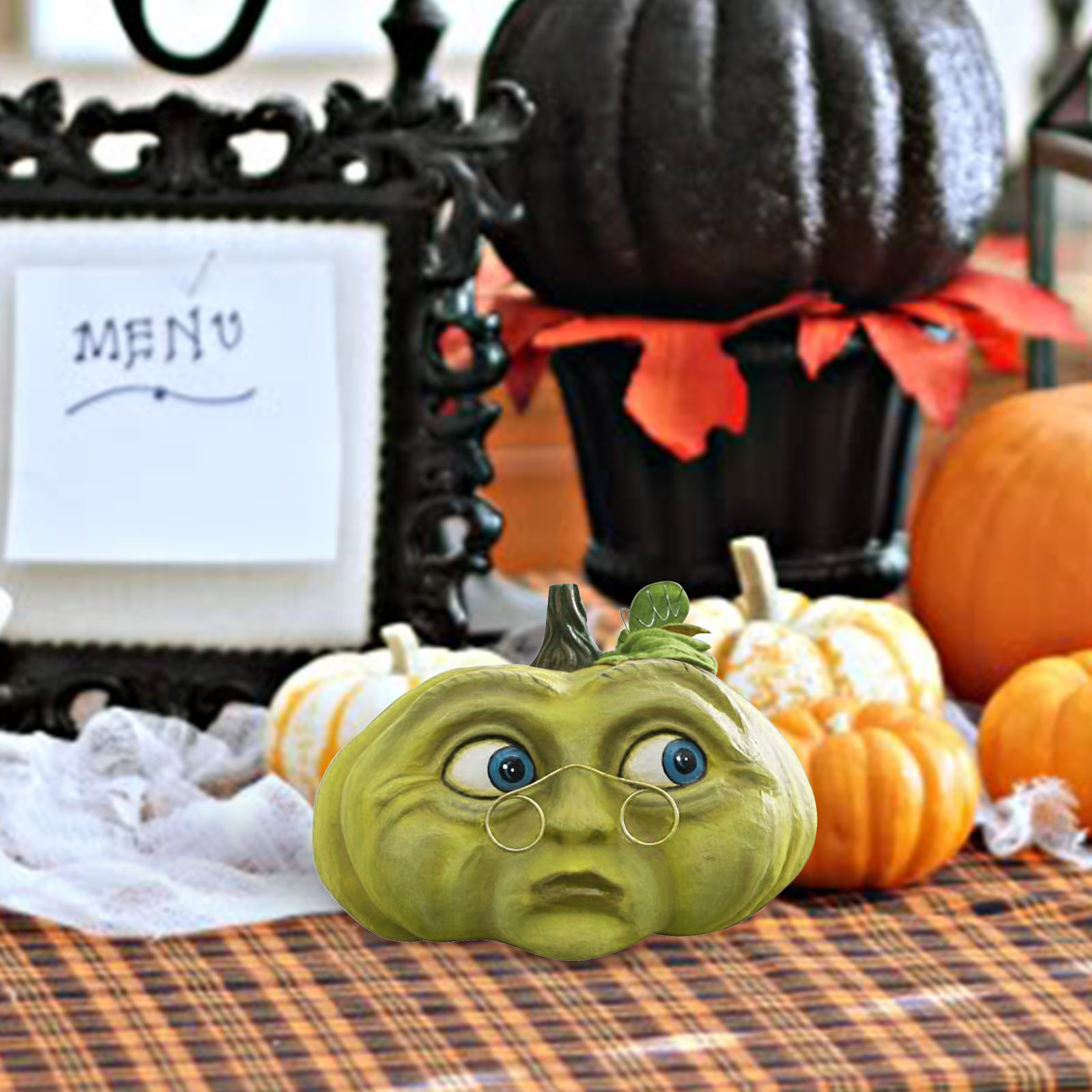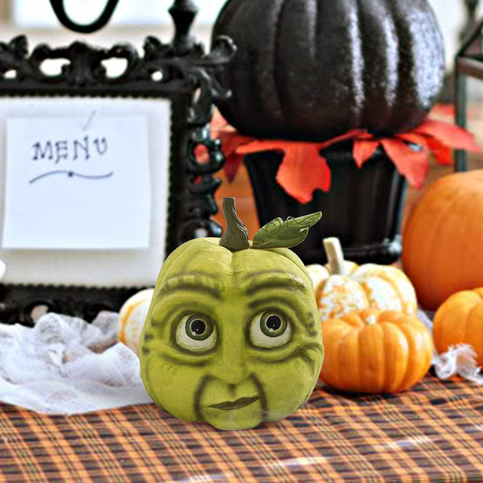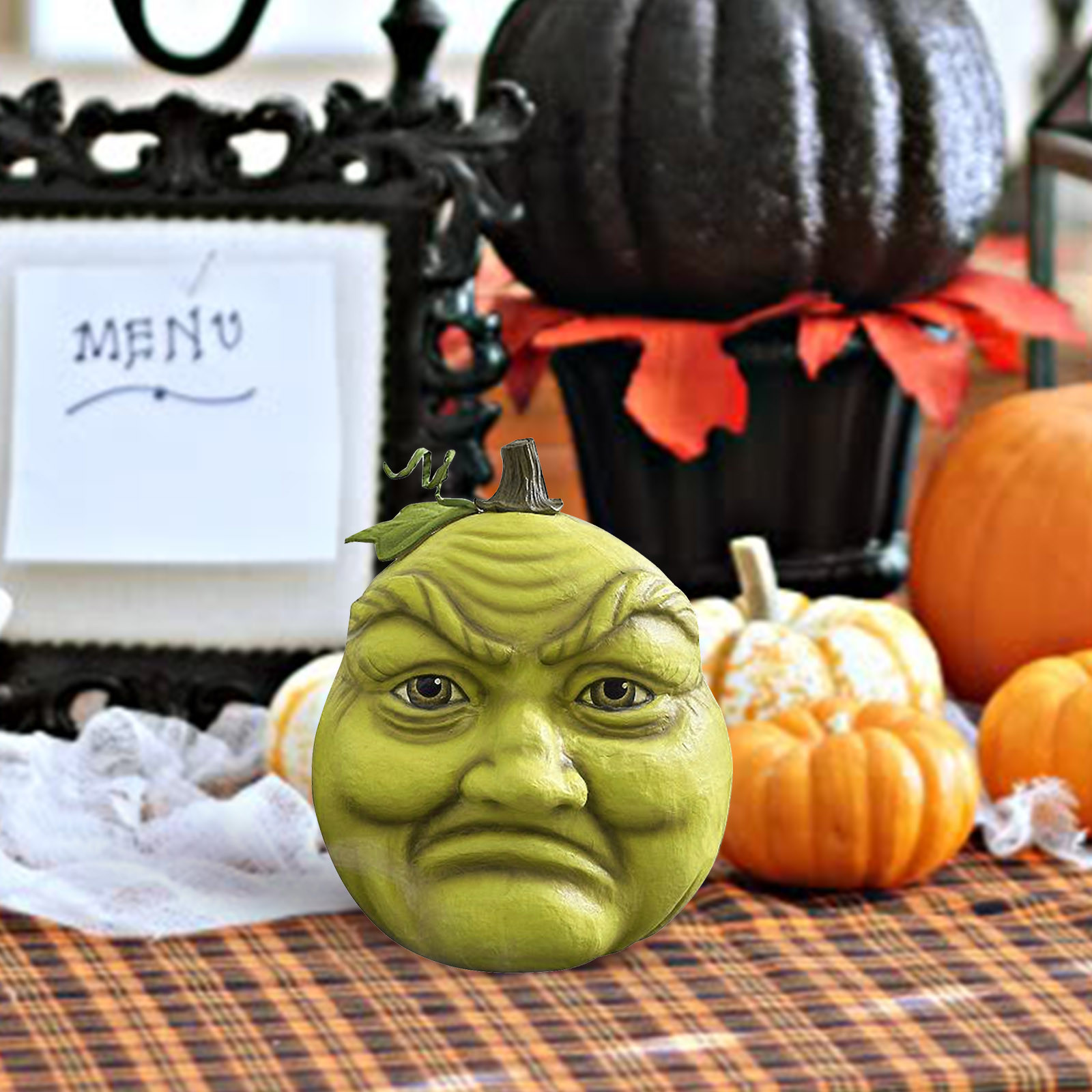 Украшение в виде тыквы на Хэллоуин Ручная роспись; Размерные акценты Papier-mâché, ручная работа с деталями Утяжеленное основание для безопасного сиденияТолько для использования в помещении