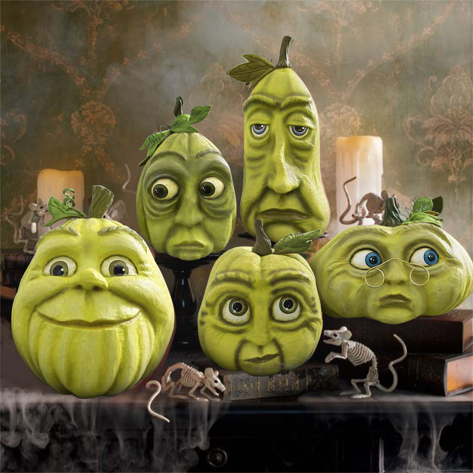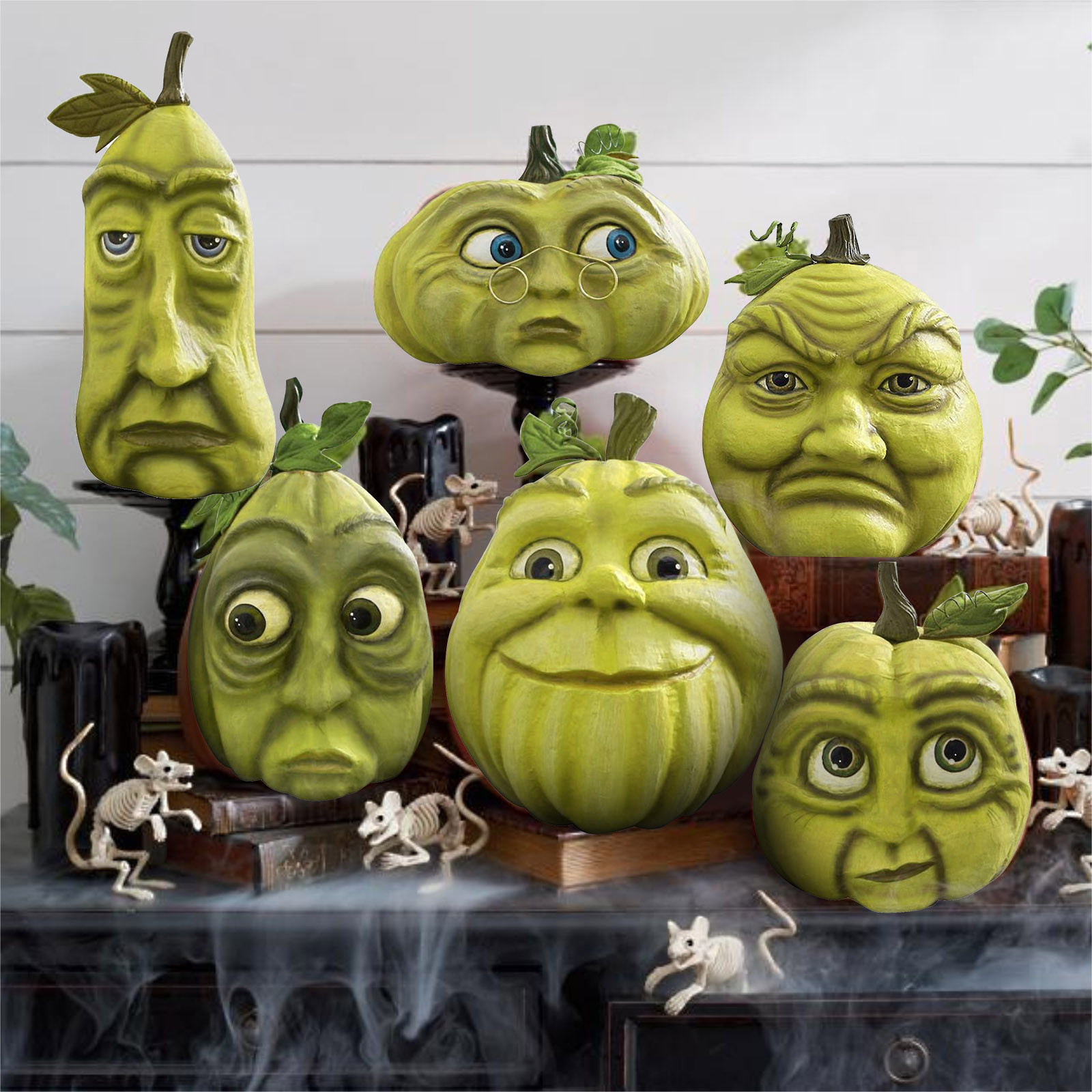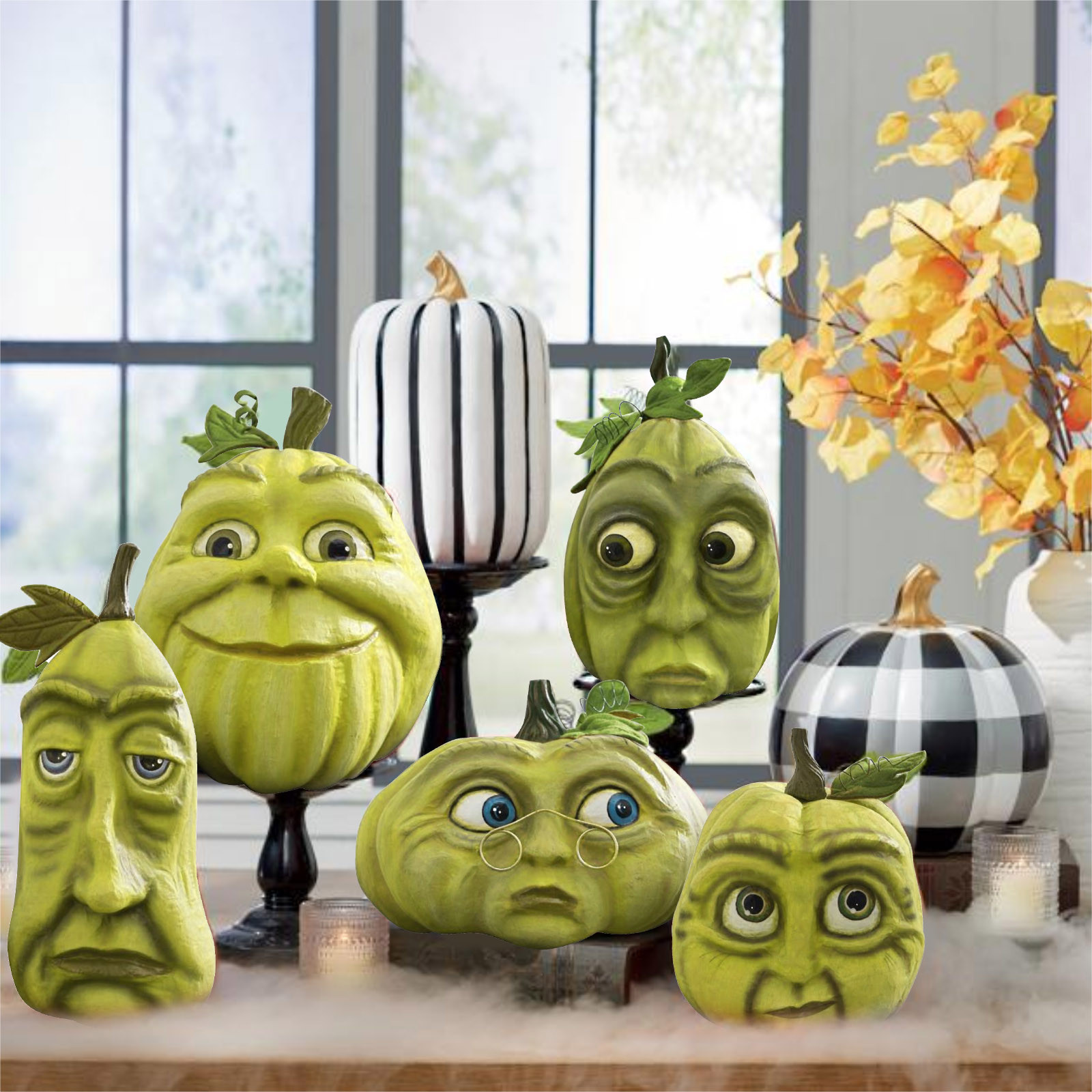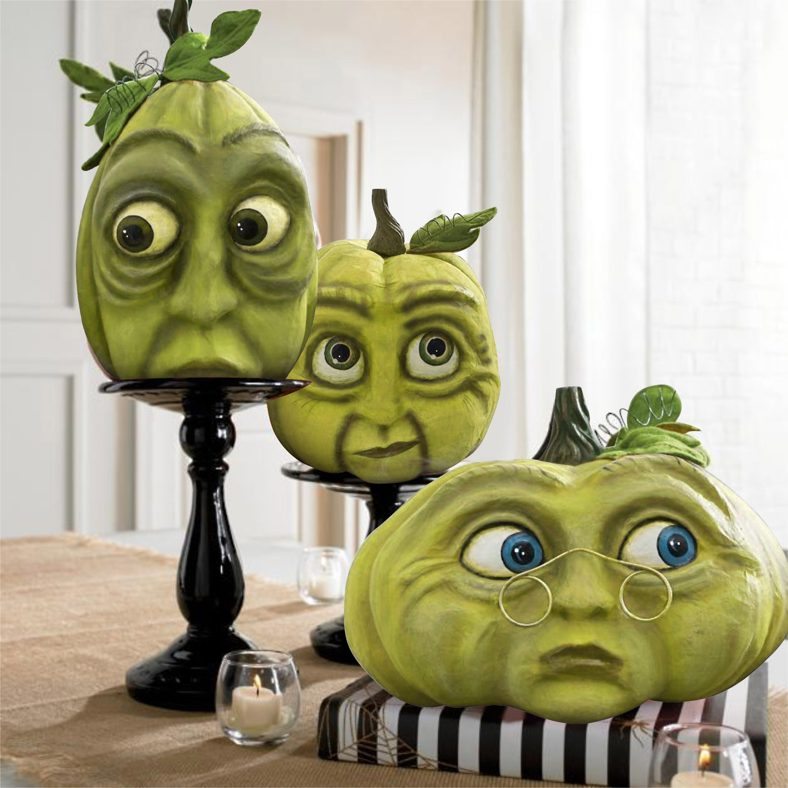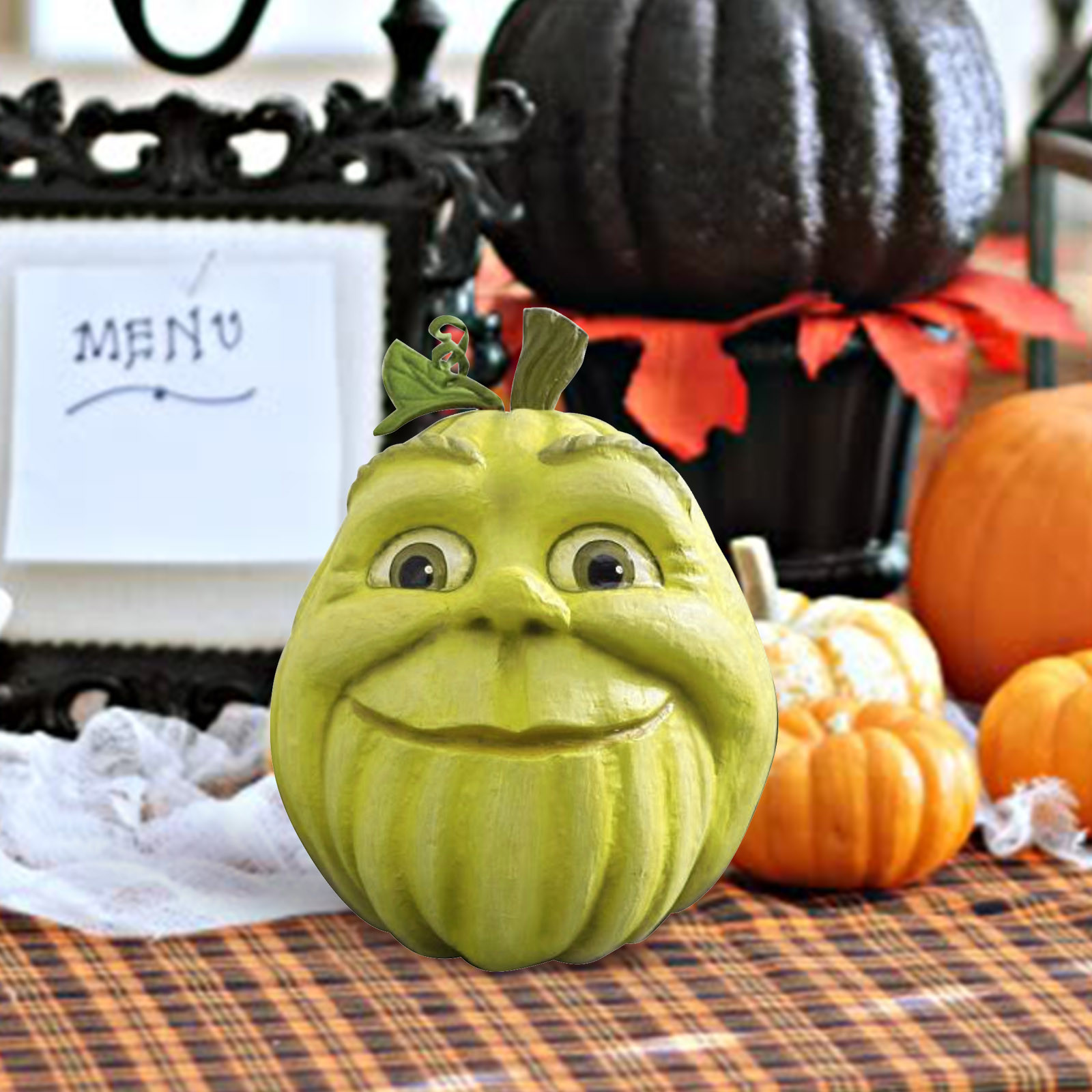 Украшение в виде тыквы на Хэллоуин Ручная роспись; Размерные акценты Papier-mâché, ручная работа с деталями Утяжеленное основание для безопасного сиденияТолько для использования в помещении