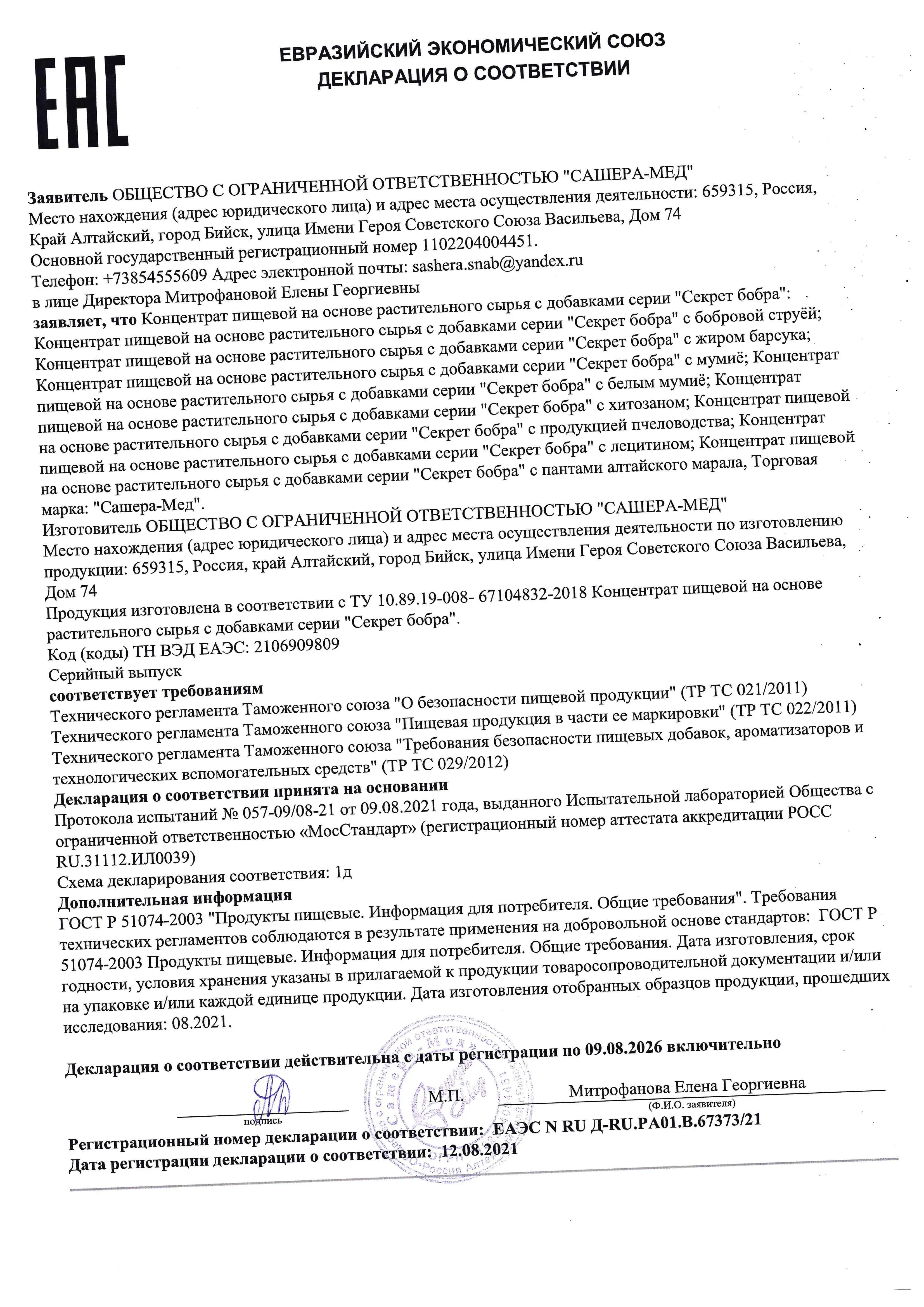 Состав: нативный концентрат бобровой струи (кастореум), нативный концентрат пантов алтайского марала, нативная перга пчелиная.