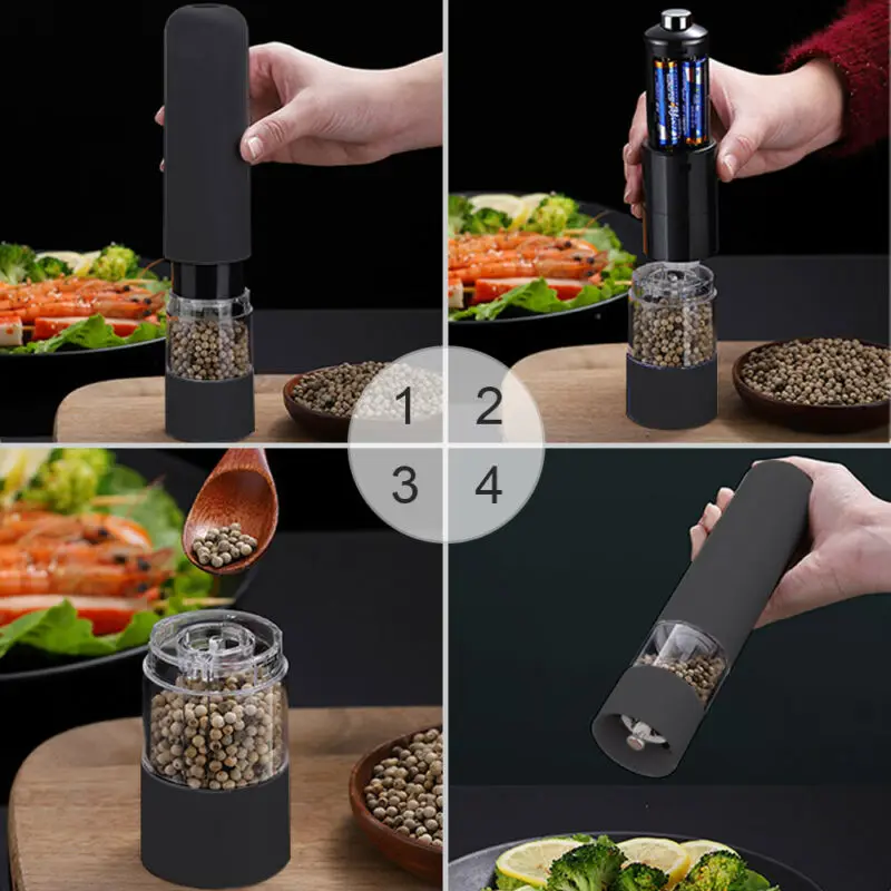 ▪Convenience: Adding fresh and tasty spices to your foods has never been so easy. ▪This amazing electric pepper mill allows you to add salt or pepper to your foods just by pressing a button!