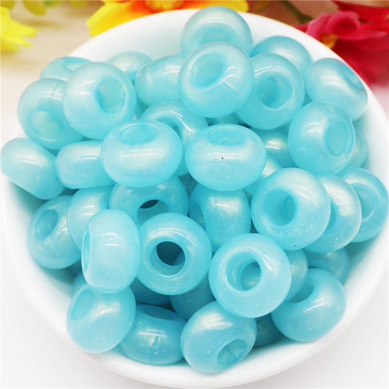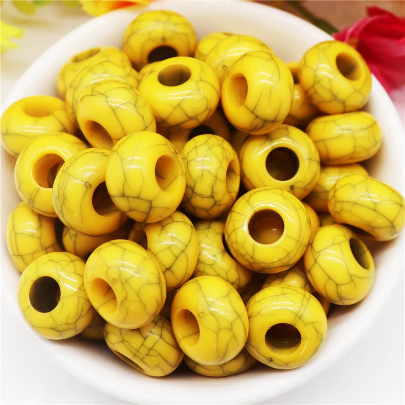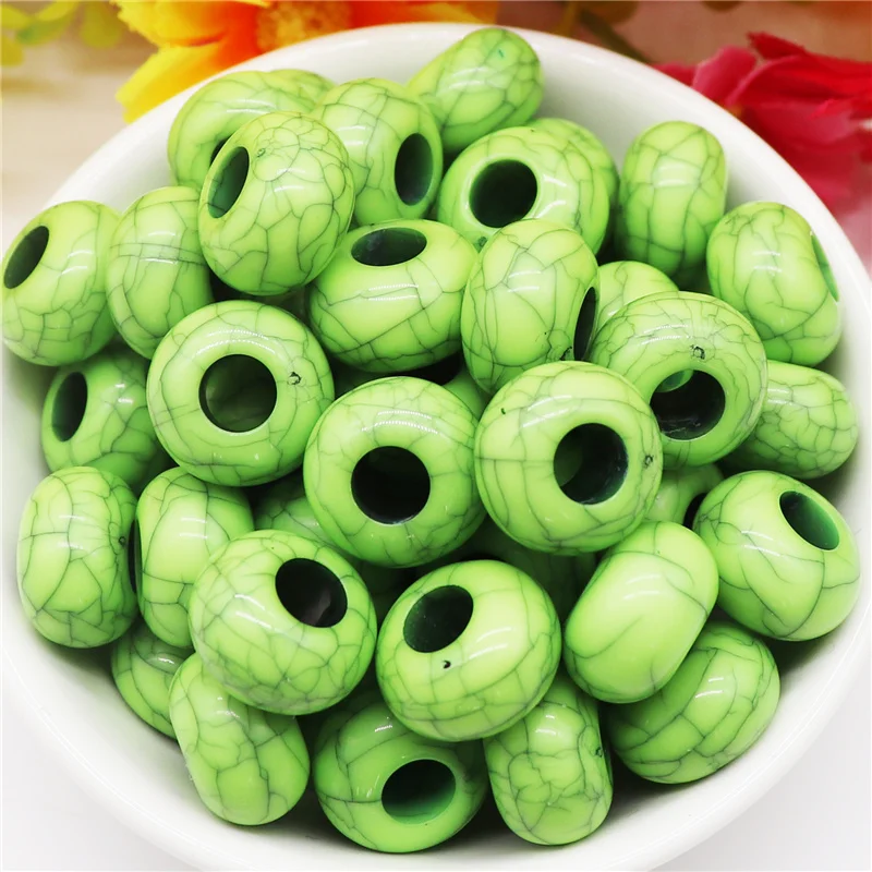 10 шт. разноцветные бирюзовые бусины в полоску 14 мм Европейские Бусины с большим отверстием, шармы, подходят для браслета Pandora, ожерелья, ремесла