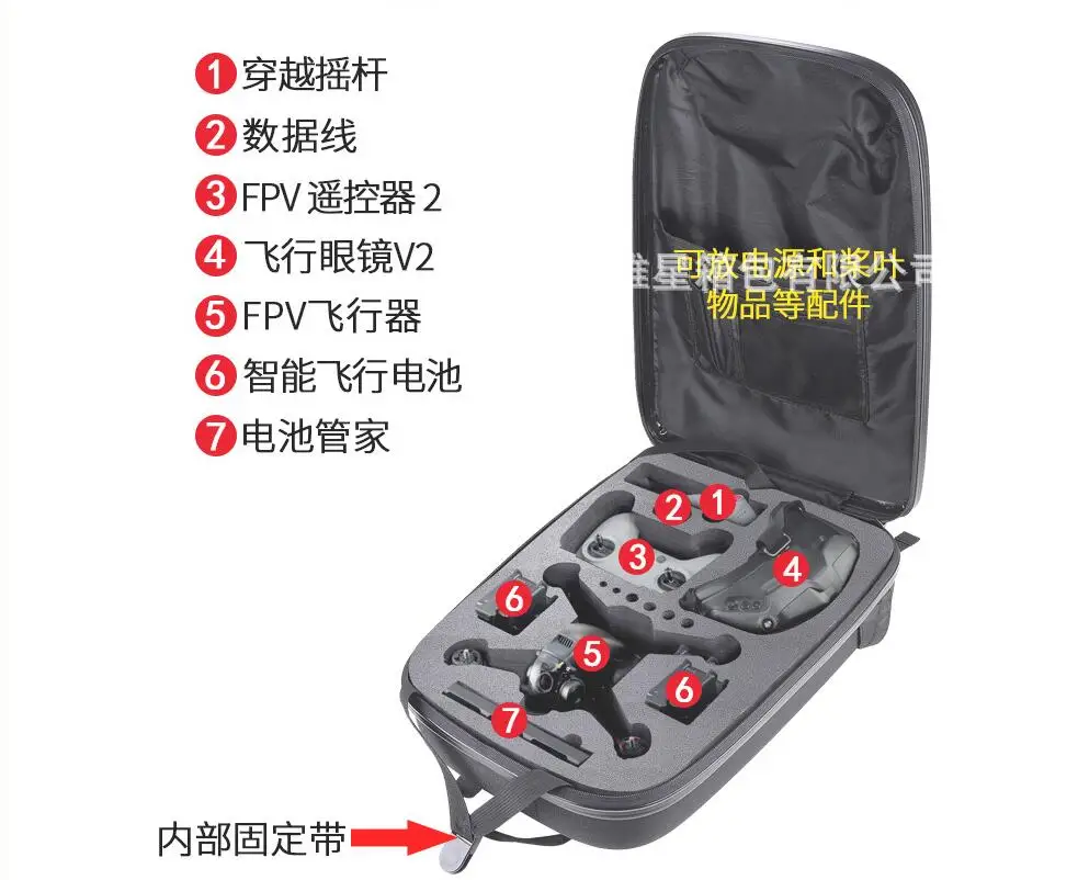 Большая емкость: может хранить 3 аккумулятора (1 шт. на корпусе дрона) + Радиоуправляемый Дрон + пульт дистанционного управления + зарядное устройство + кабели + пропеллеры + очки FPV V2