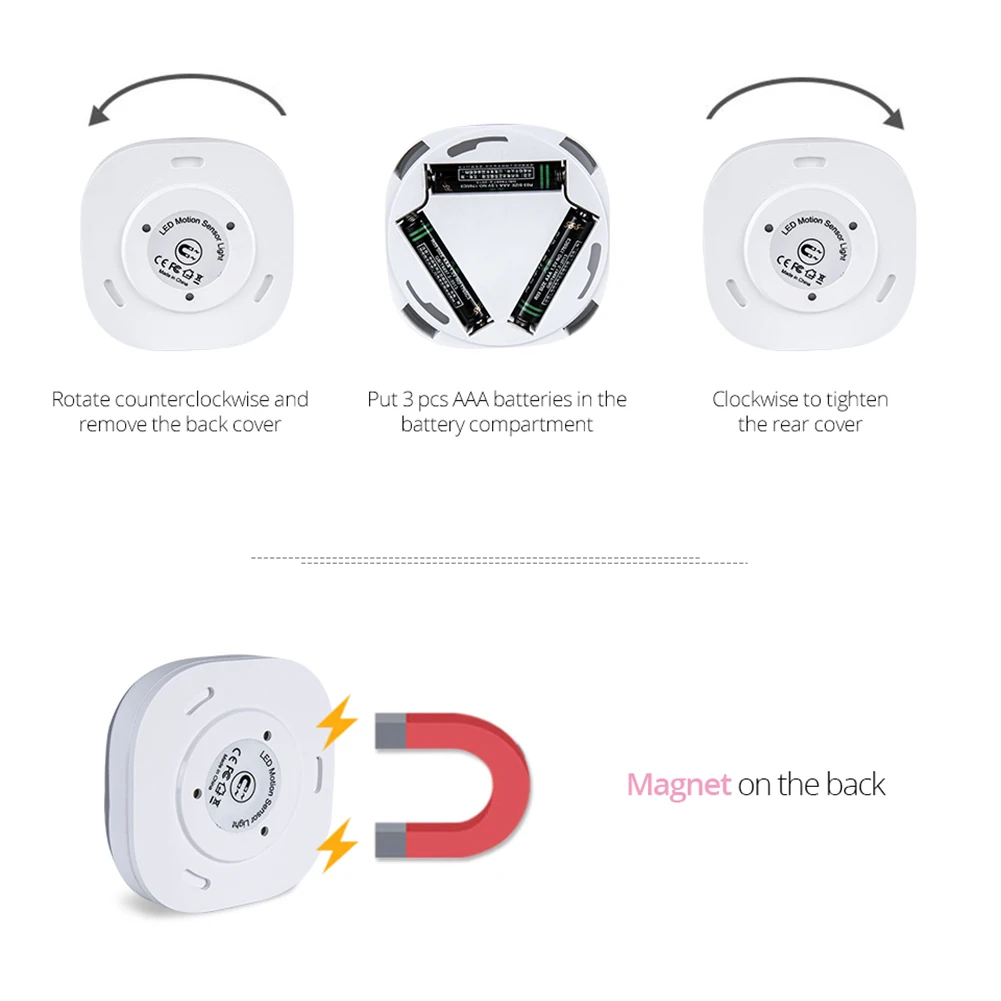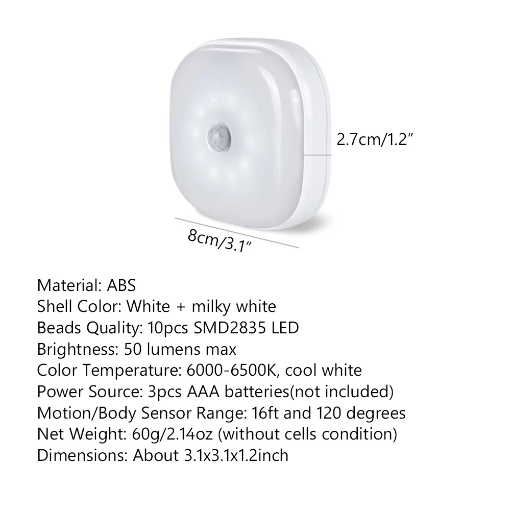 Светодиодный ночник с автоматическим включением датчика до 16 футов, Автоматическое отключение через 25 секунд без обнаружения движения, помогает продлить срок службы батареи.