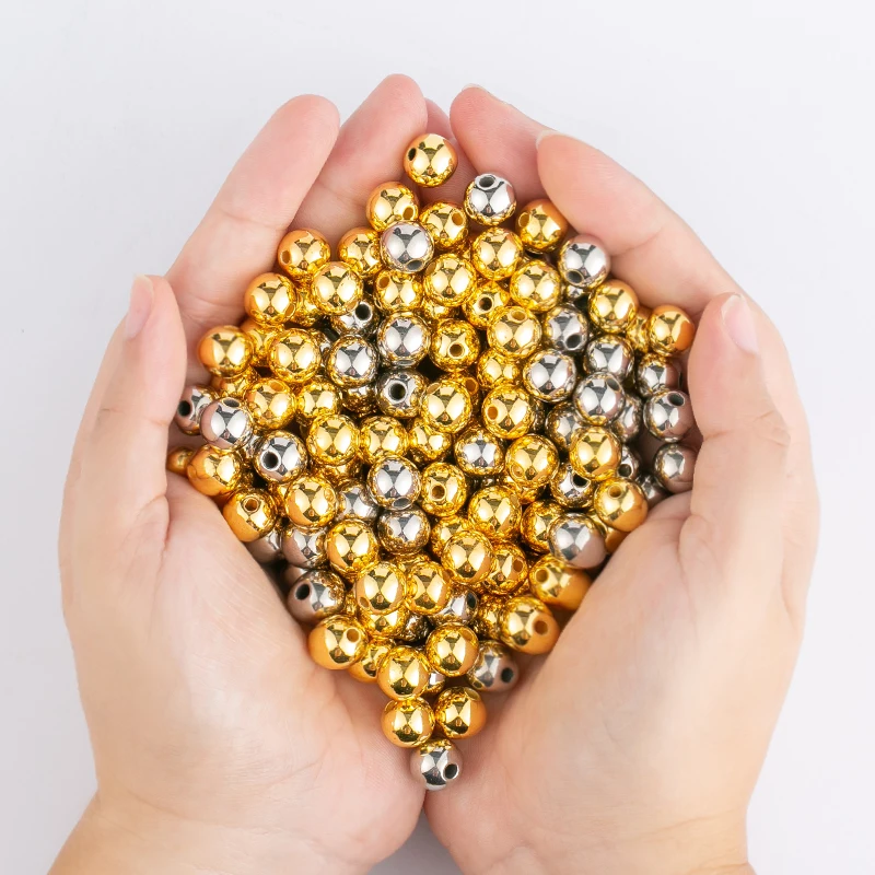 Браслетов, ожерелий, диаметр бусины 6/8/10 мм свободные круглый цвета: золотистый, серебристый цвет, бусины для рукоделия, ручная работа, ожерелье браслеты "сделай сам" для изготовления ювелирных изделий