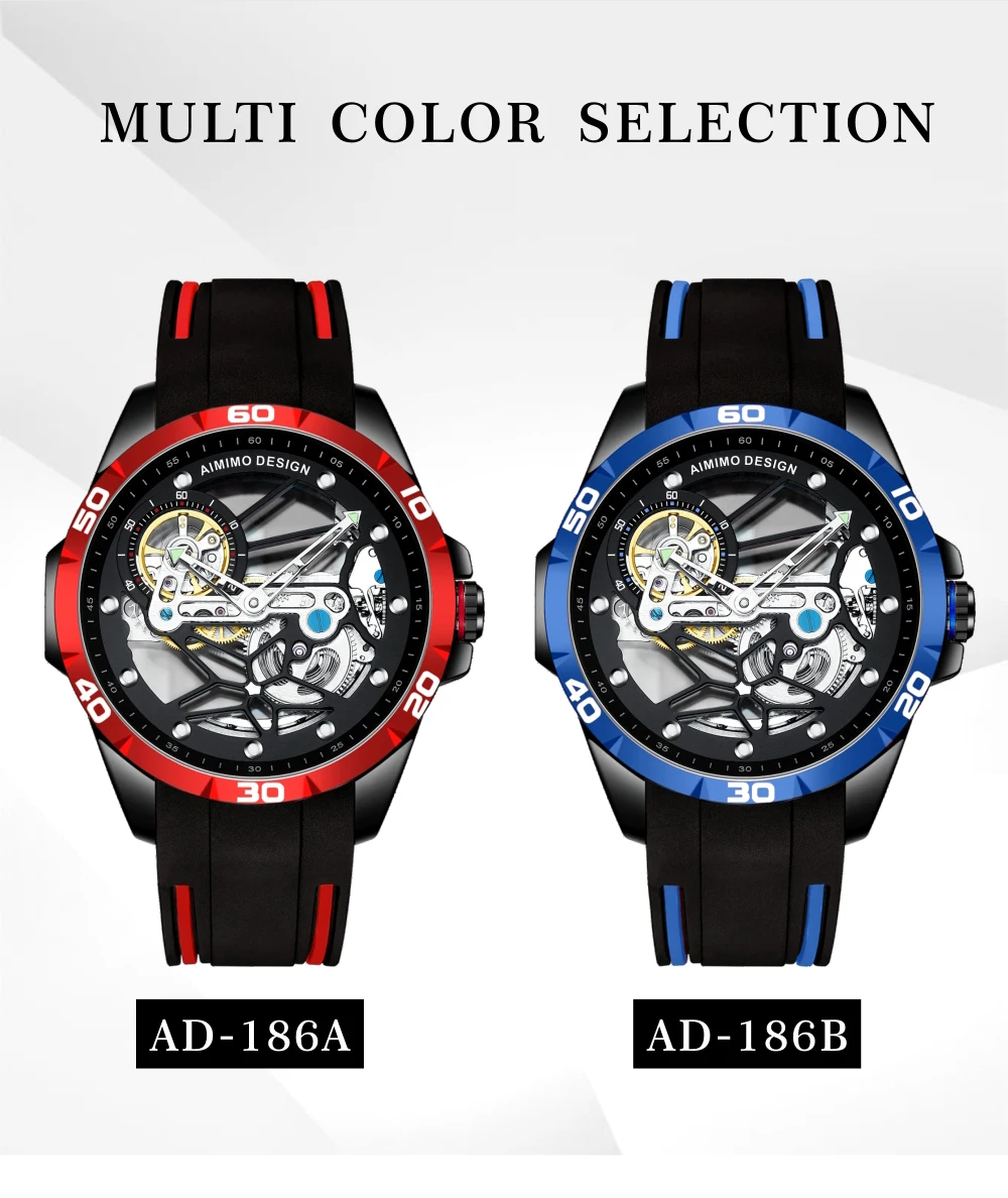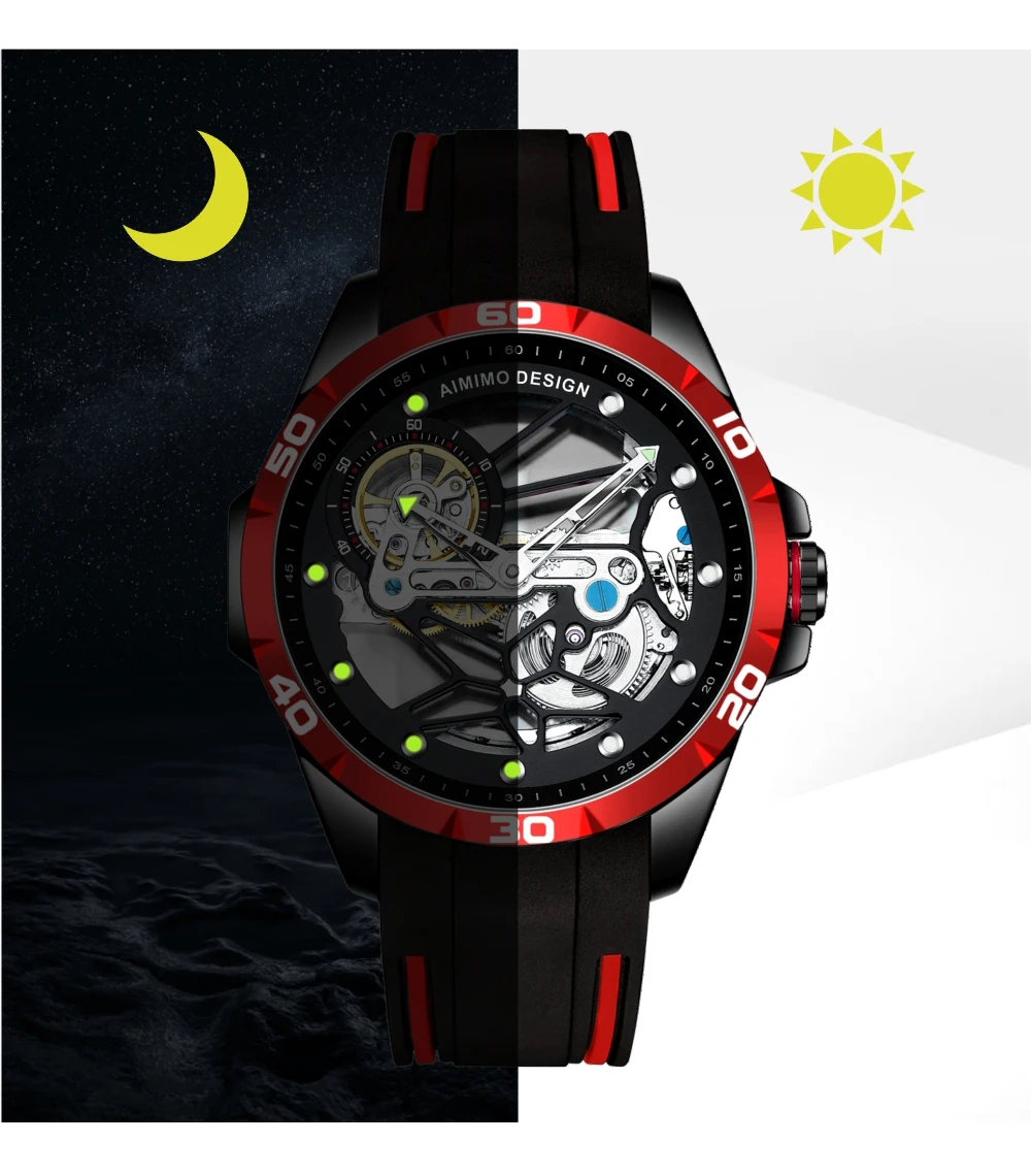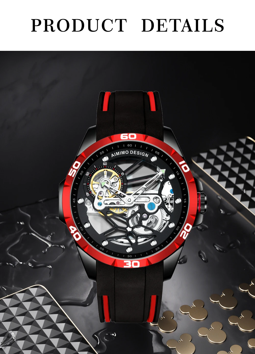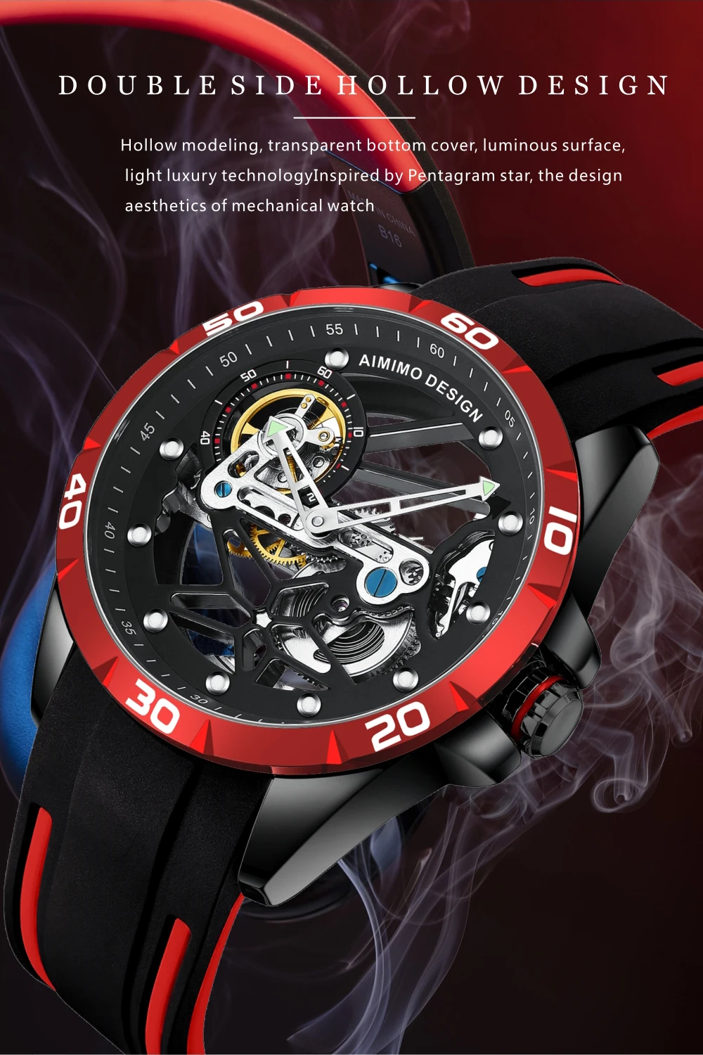 AIMIMO Дизайн Скелет механические часы мужские светящиеся стимпанк наручные часы винтажные бочкообразные автоматические часы водонепроницаемые 30 м