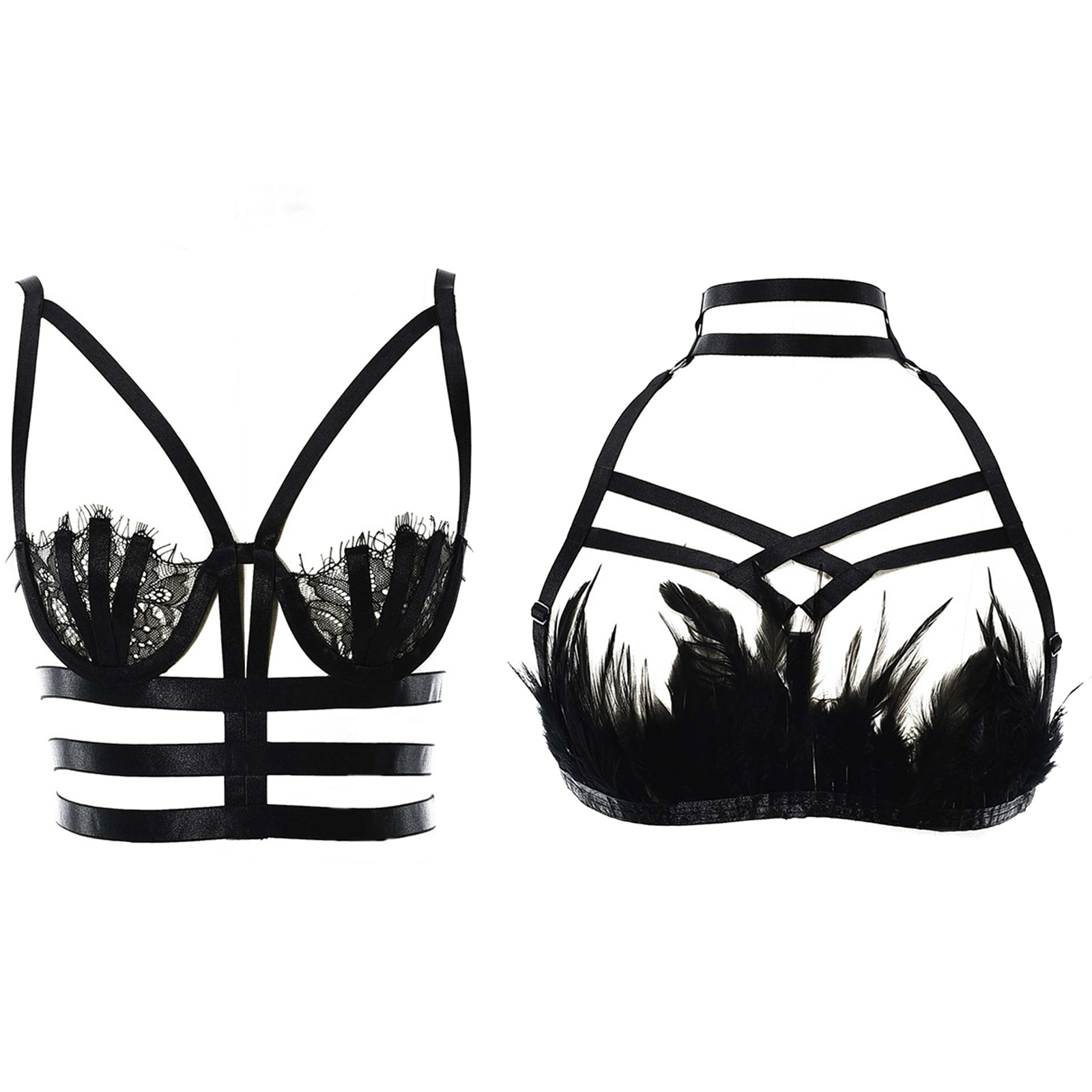 Женский бюстгальтер пуш-ап с перьями и кружевом, с вырезами, на бретелях, для ночного клуба, для сценического шоу.