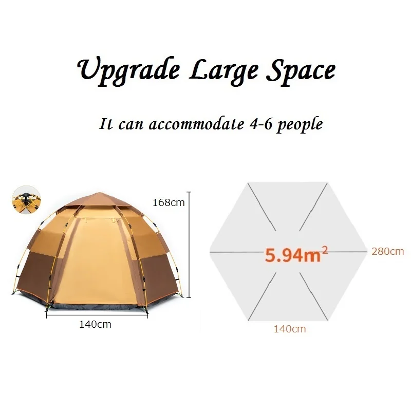 Автоматическая палатка с шестигранной головкой для 4-6 человек, уличная Водонепроницаемая всплывающая быстро установленная палатка для кемпинга для семьи, вечерние, пляжные, походные, путешествия