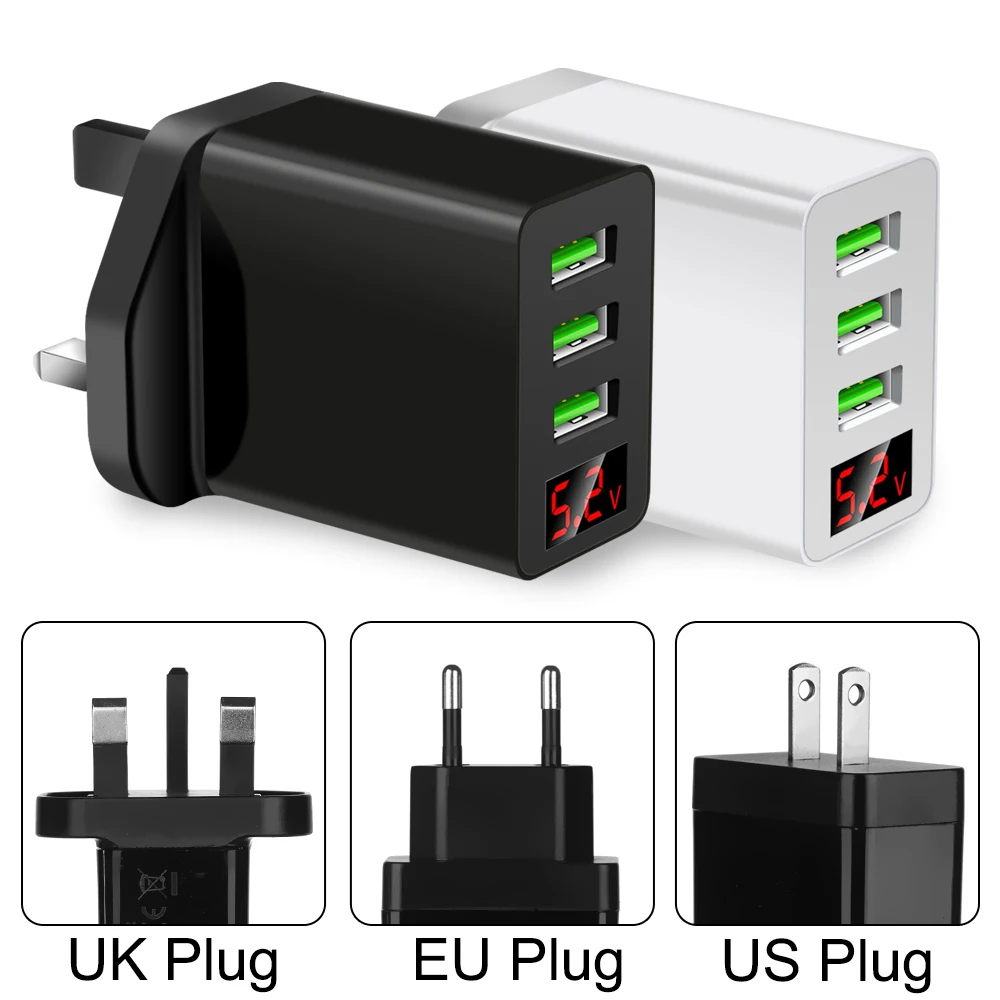 Штепсельная Вилка EU US, 3 мульти-порта, быстрое зарядное устройство для телефона, usb-хаб, адаптер, универсальный светодиодный, цифровой дисплей, USB трансформатор, источник питания