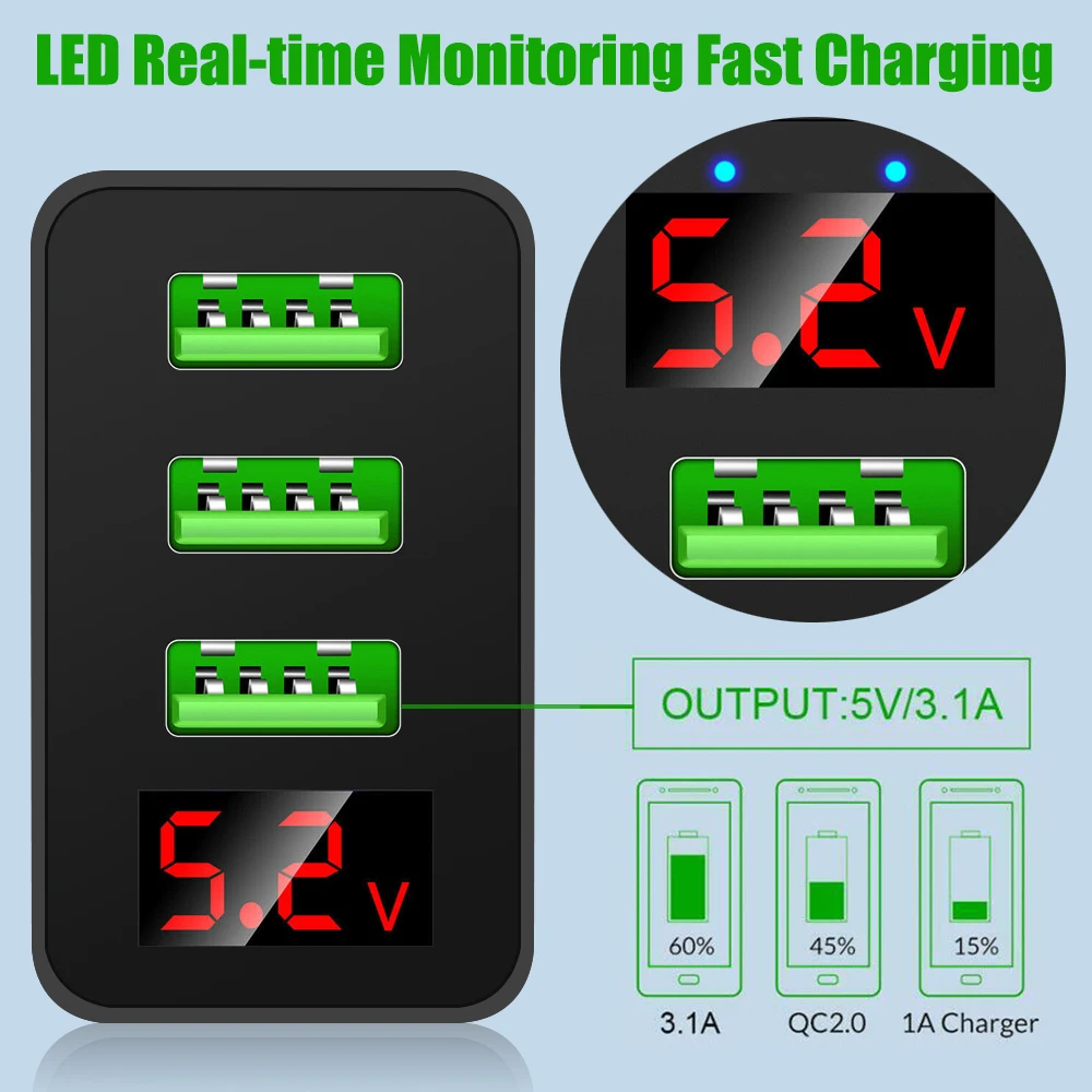 Тип: зарядное устройство для телефона с цифровым дисплеем 3USB