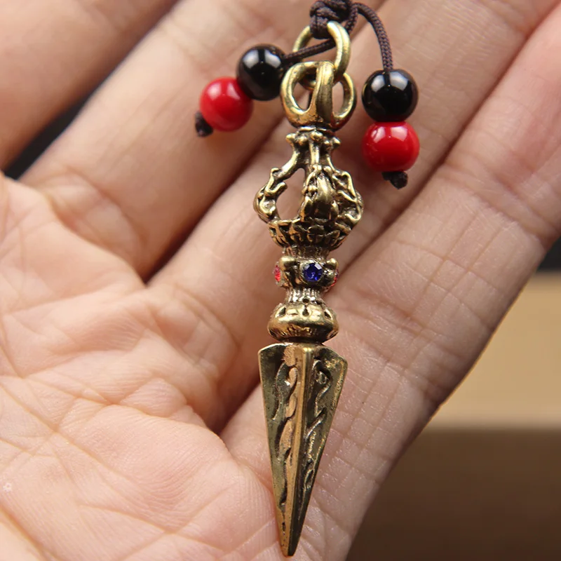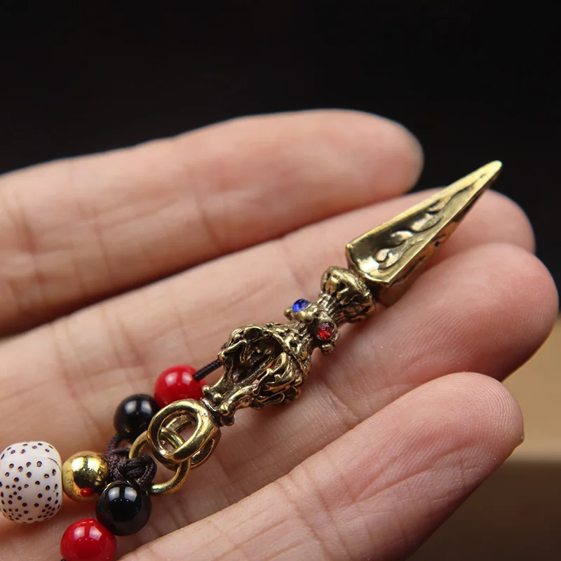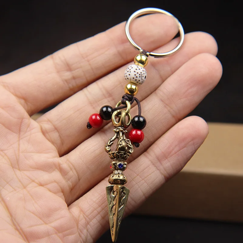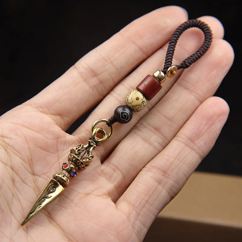Ретро латунные синие красные бусы Пест Ваджра брелок шнурки подвески ювелирные изделия автомобильный брелок удача благоприятная сумка Подвески DIY Подвески