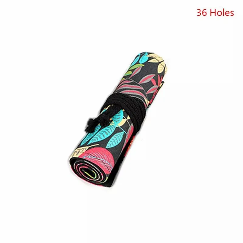 Tree Leaf 12/24/36/48/72 Holes Canvas Roll Pen Curtain Pencil Bag Case Makeup Wrap Holder Storage Pouch School Supplies