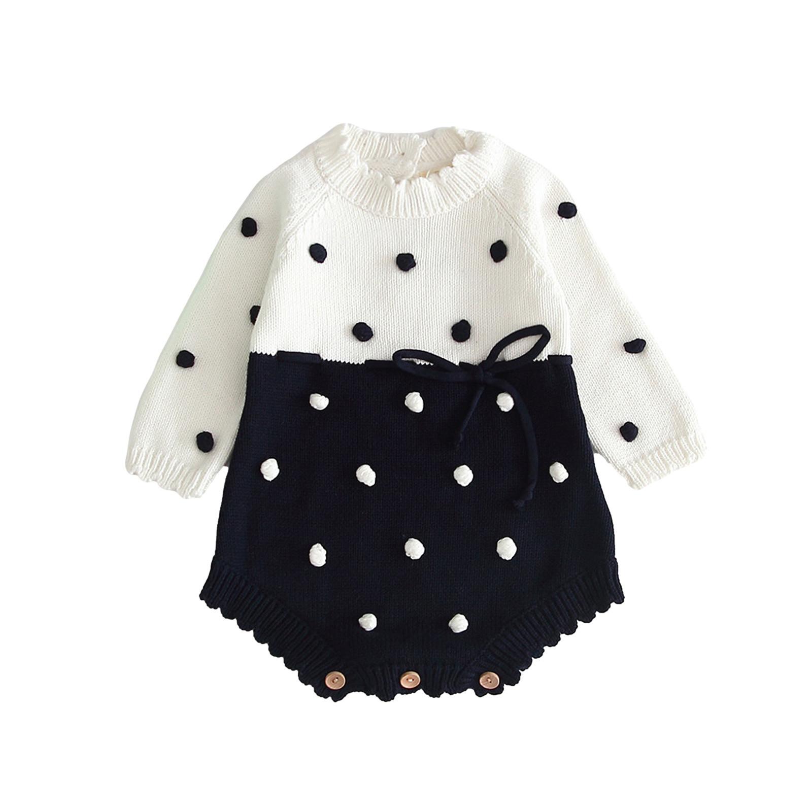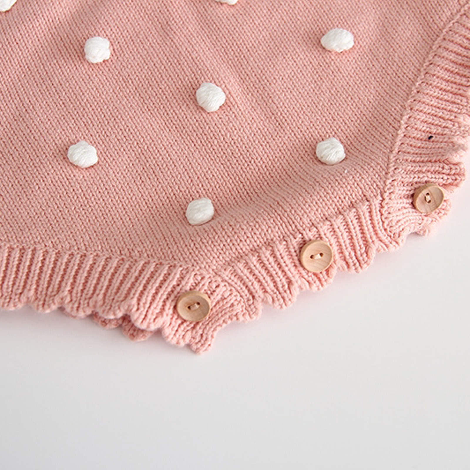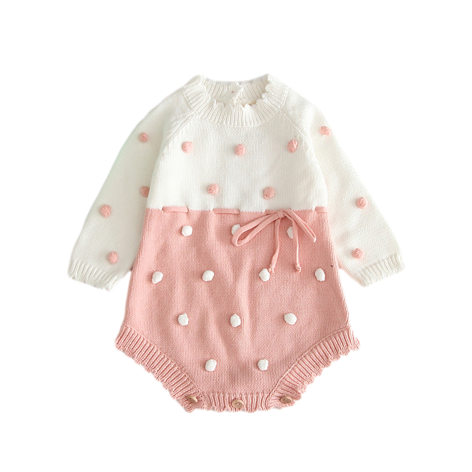 Одежда для малышей для маленьких девочек, однотонный хлопковый Цвет с маленькими пушистыми помпончиками, длинный рукав, трикотажный комбинезон с кружевом Детский комбинезон
