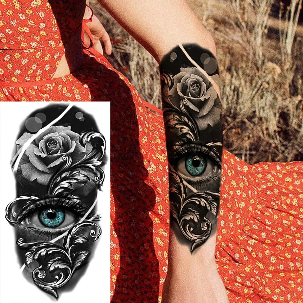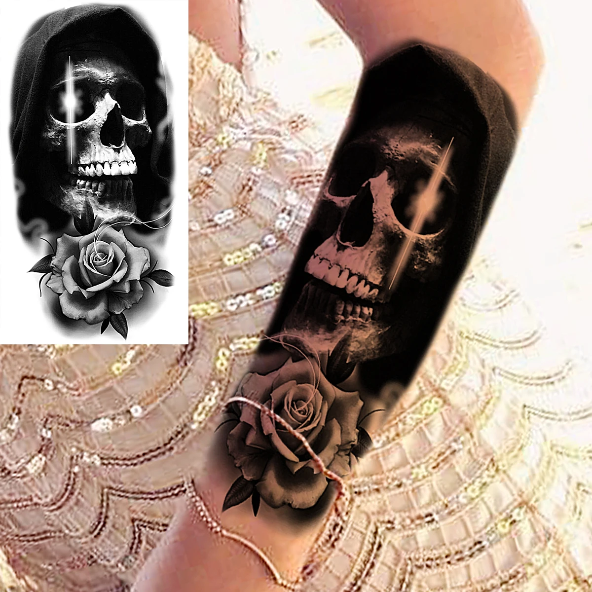 Черные Временные татуировки для мальчиков с тигром, для мужчин, для взрослых, волк, Череп, цветок, Пиратская поддельная татуировка, реалистичные поддельные татуировки, водостойкие татуировки