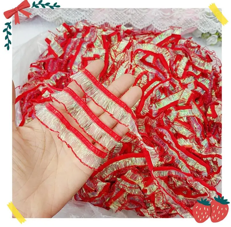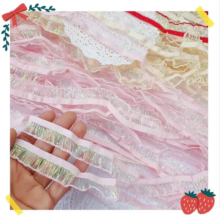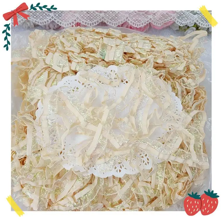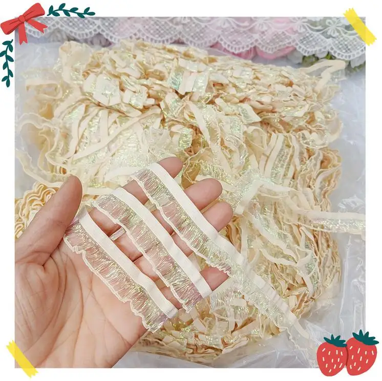Оптовая цена по прейскуранту завода 400 ярдов узкие мягкие полые русалки полосой полые желто-красно-розовые эластичные гофрированные кружева S0926L