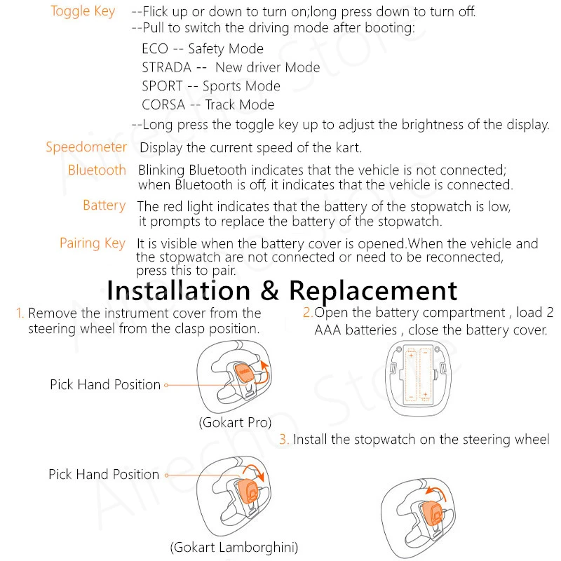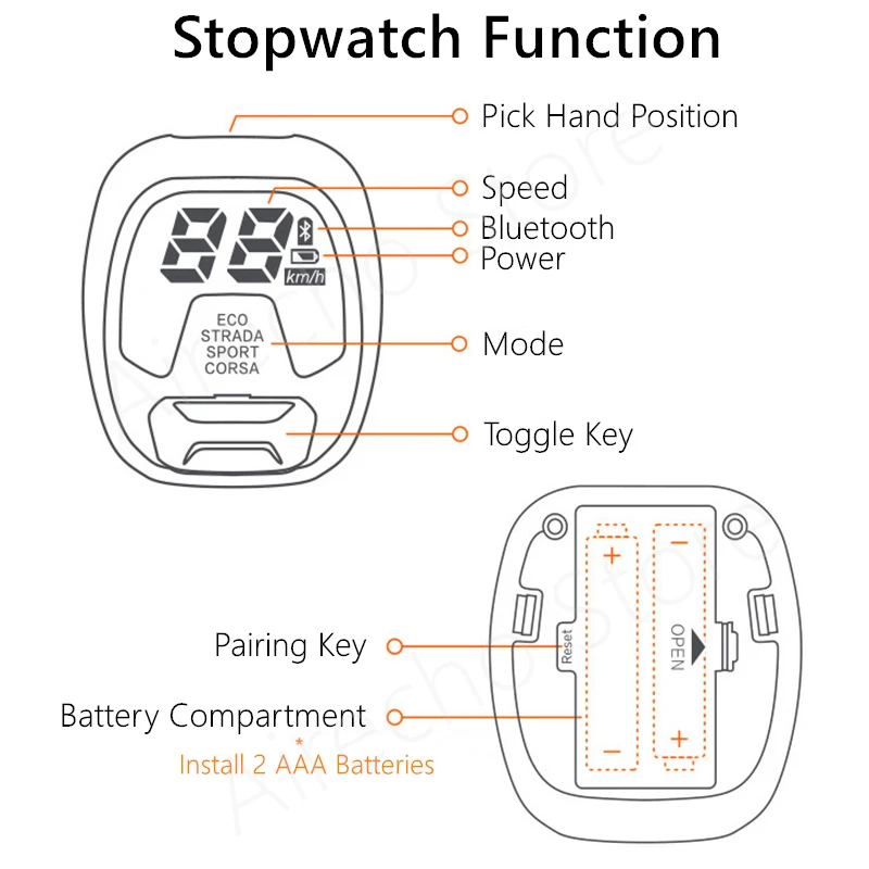 Ключ сопряжения: он виден при открытии крышки аккумулятора. Когда транспортное средство и секундомер не подключены или должны быть повторно подключены, нажмите на эту пару.