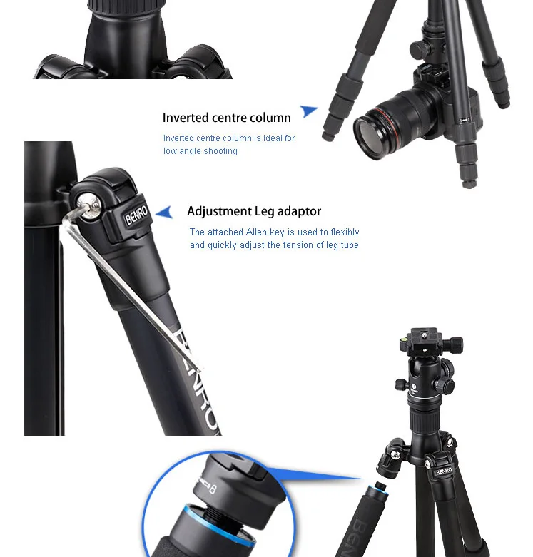 Aero 4 видео Путешествия Ангел Набор для штатива-треноги с Benro сочетает в себе съемный плоское основание видео головное и 3-ступенчатый штатив из алюминия для ног. Система имеет максимальную высоту 65,2 "с удлиненной центральной колонной и имеет обратную складную ножку для хранения длиной всего 21,7". Поддержка нагрузки до 8,8 фунтов, видеоголовкой предлагает отдельные панорамирования и наклона управления для плавного и точного движения камеры. Для повышенной универсальности одна из ножек штатива является съемной и может быть объединена с центральной колонной, чтобы превратить систему в монопод при необходимости. Мягкий чехол для переноски и ремень входят в комплект.