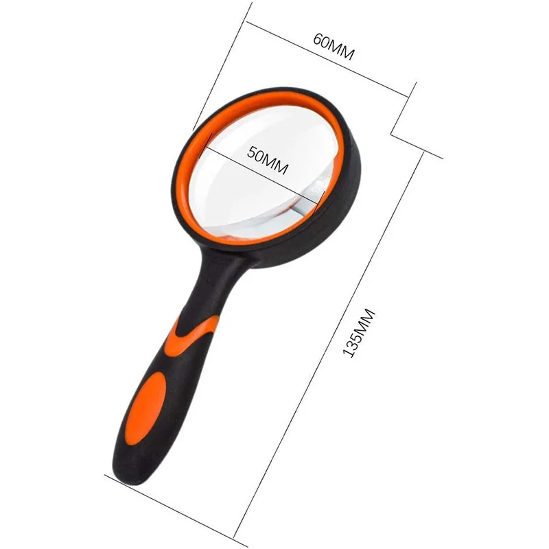 [Конструкция с мягким резиновым покрытием] ручка с эргономичной резиной мягкая и удобная. Нескользящее резиновое покрытие помогает легко захватывать. Увеличитель со стеклянными линзами с толстой и прочной резиновой рамой обеспечивает его превосходное хранение.