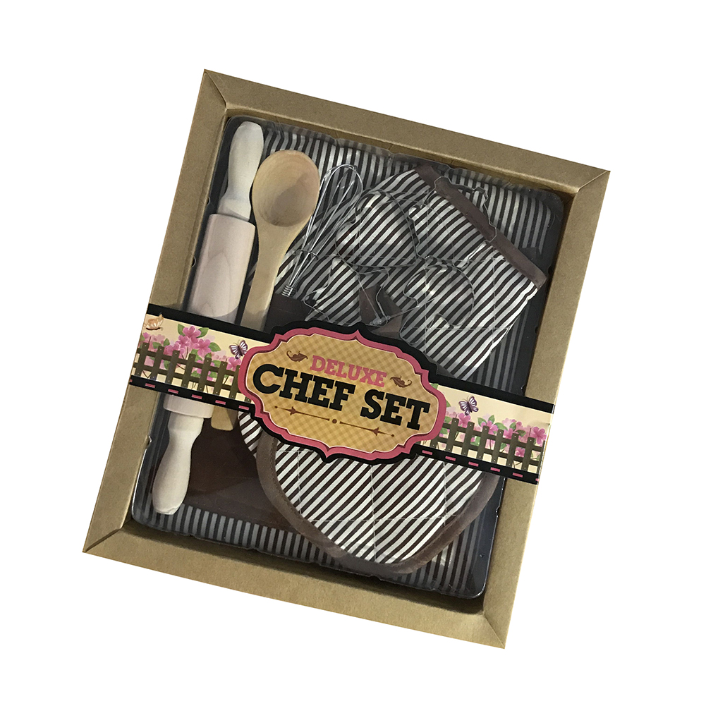 1 * фартук + 1 * шапка + 1 * ложка + 1 * Скалка + 1 * баклажаны + 1 * салфетки + 1 * перчатка + 4 * форма для выпечки