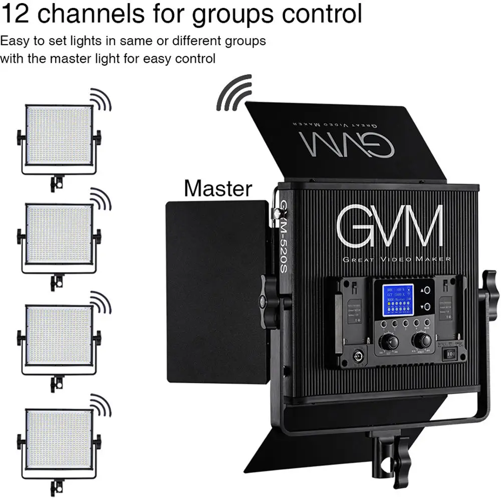 Мастер/раб и 12 каналов функции: вы можете установить 12 различных каналов, и каждый канал может управлять более чем 10 шт GVM той же серии видео светильник. Нужно только выбрать один видео светильник в режиме master, а другие в режиме Slave. Тогда это означает, что вы можете управлять около 120 шт. видео светильник. Обратите внимание: Эта функция беспроводного дистанционного управления применяется только к "GVM серии видео светильник. '' GVM-520S, GVM-672S ''и т. Д.