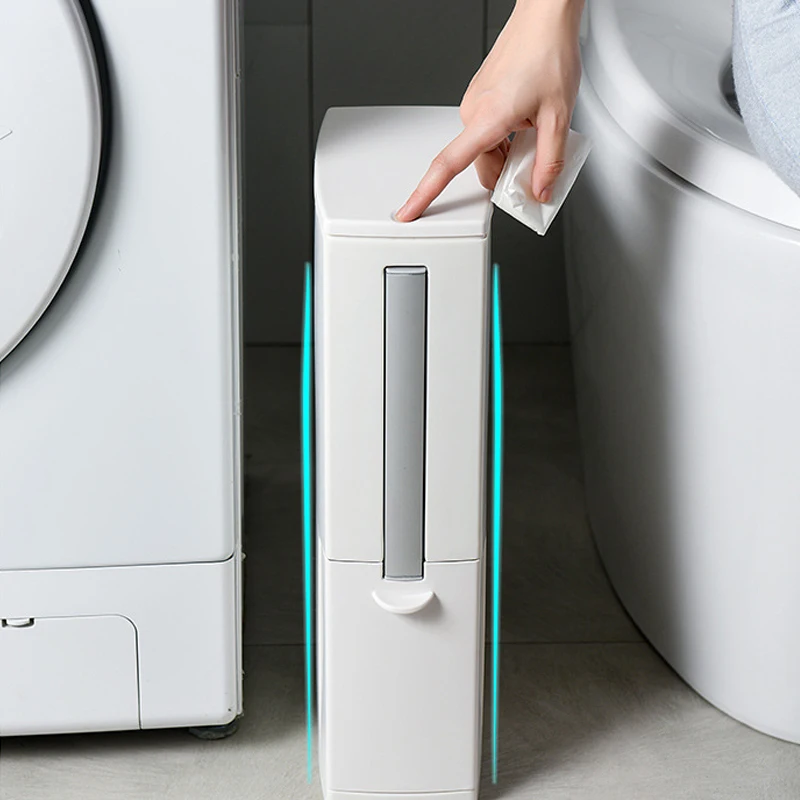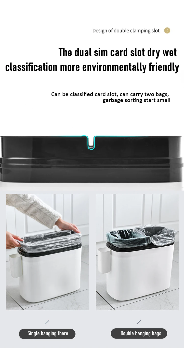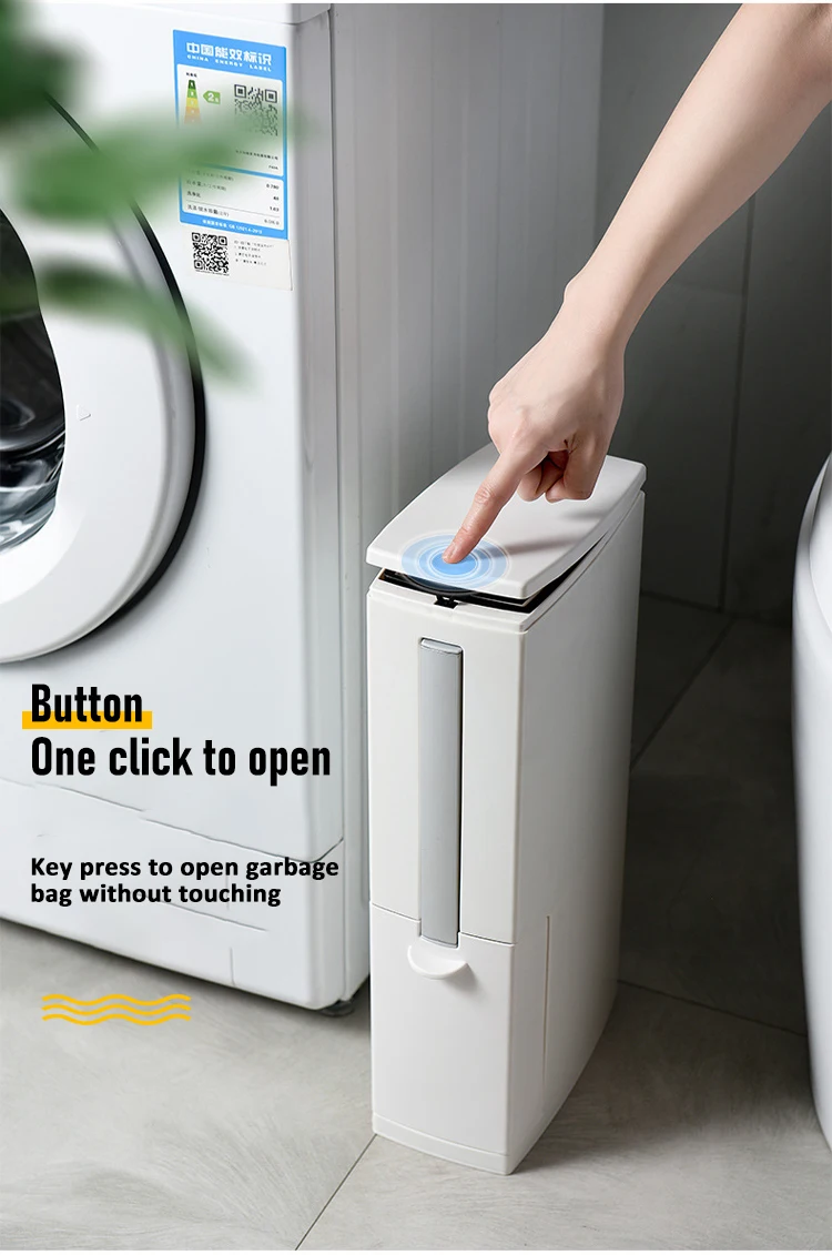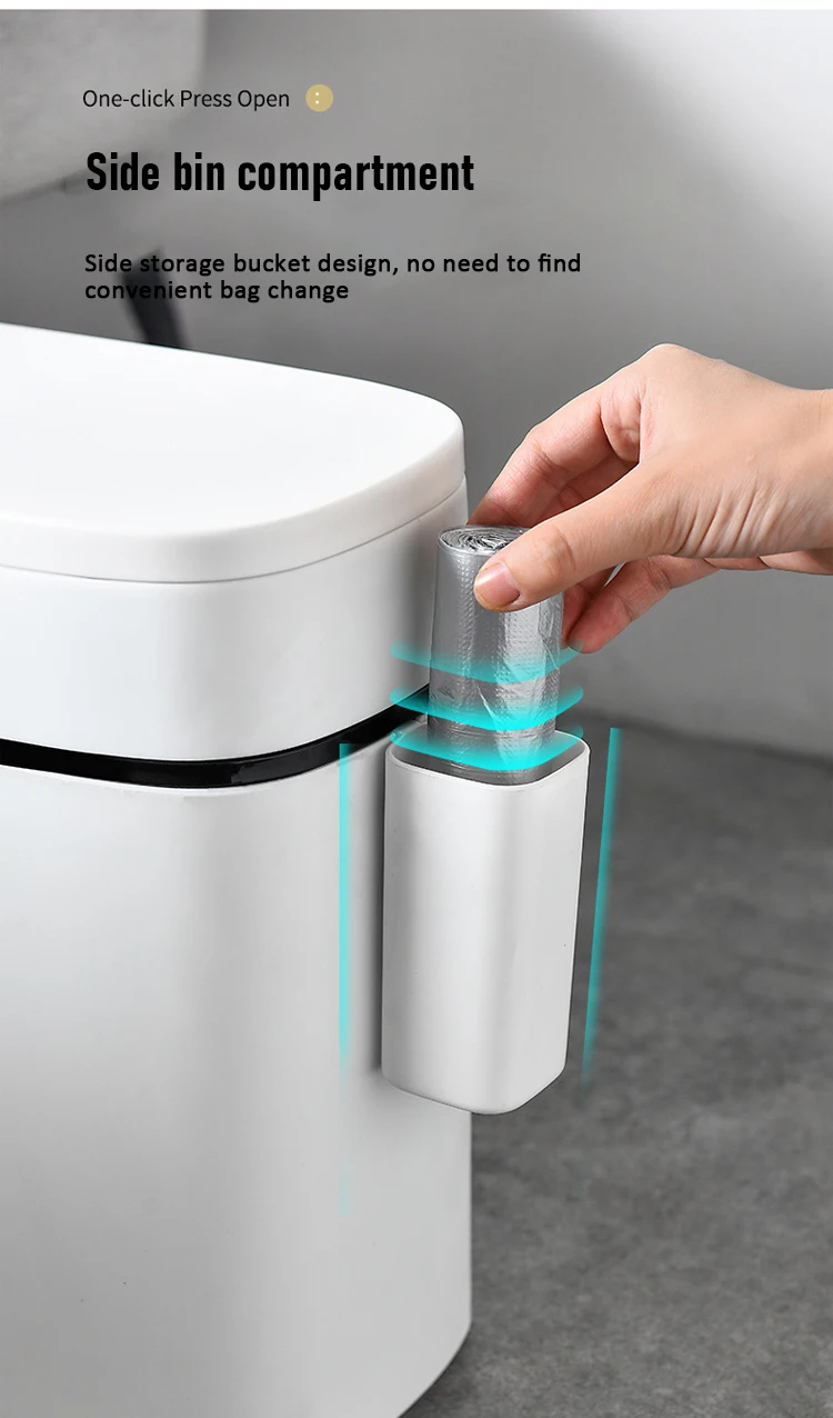 Подходит для любого места:С отверстием для мусорного мешка, подходящим для перемещения в узких пространствах, тонкий дизайн, который отлично выглядит и легко помещается в узкие отверстия и небольшие пространства. Хорошо помещается в ванных комнатах, офисах или везде, где пространство ограничено.
