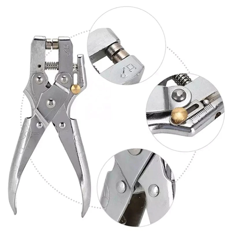 Этот продукт является двухцелевые мужские солнцезащитные очки плоскогубцы, во-первых: он может пробивки отверстий, он может удар 5,0 мм отверстия на бумаге карты, тонкие пластиковые листы, кожи (Сертификация ce & iso) другие предметы во-вторых: он может свернуть полые заклепки диаметром 4,5 мм стороне находится правой рукой набор «сделай сам» для дома и офиса
