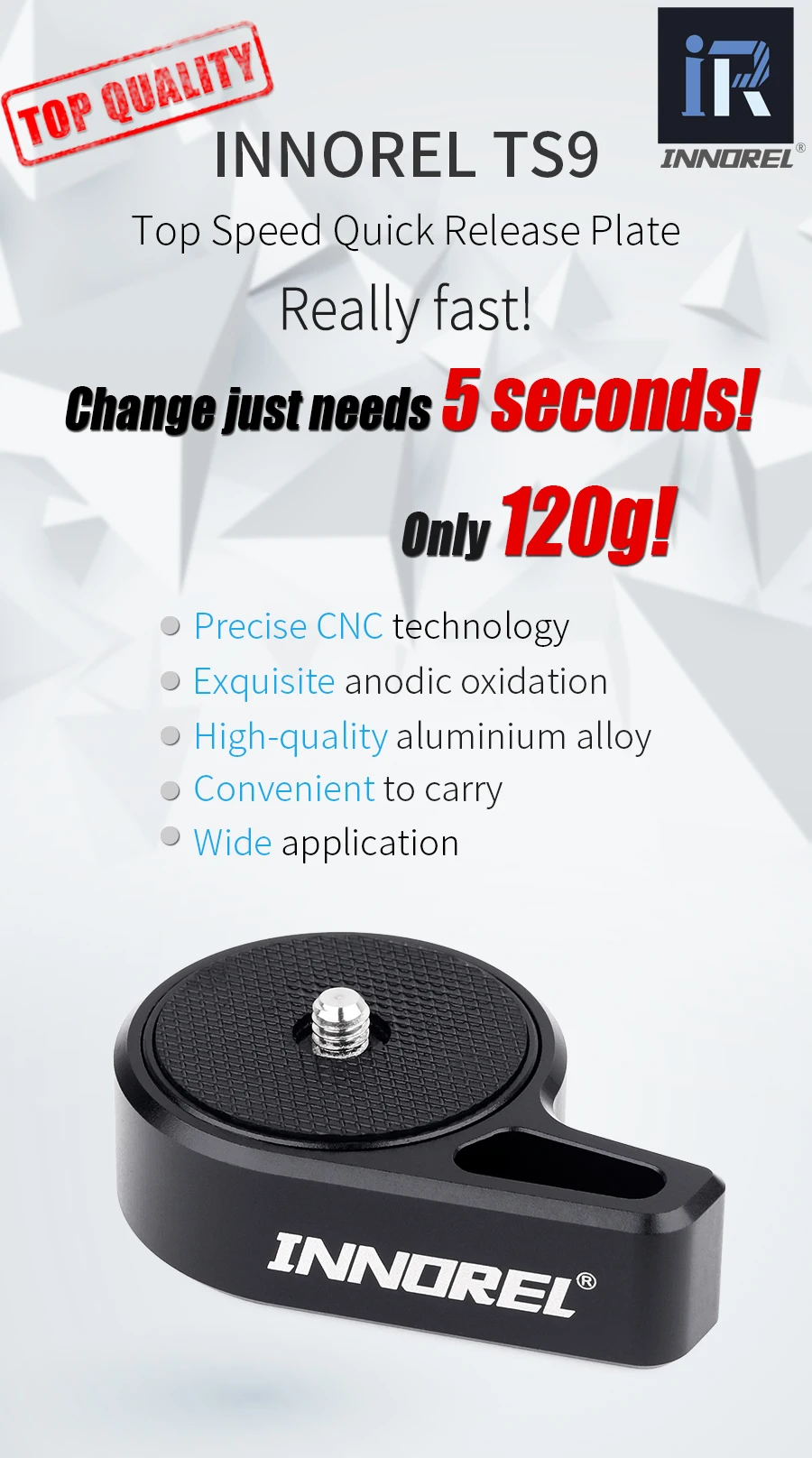 【Гарантия и Упаковка 】 мы предоставляем его с двухлетней гарантией. В посылка есть TS9 высокоскоростная qr-плата, упаковочная коробка, винты 1/4 "-3/8".